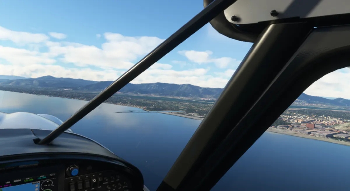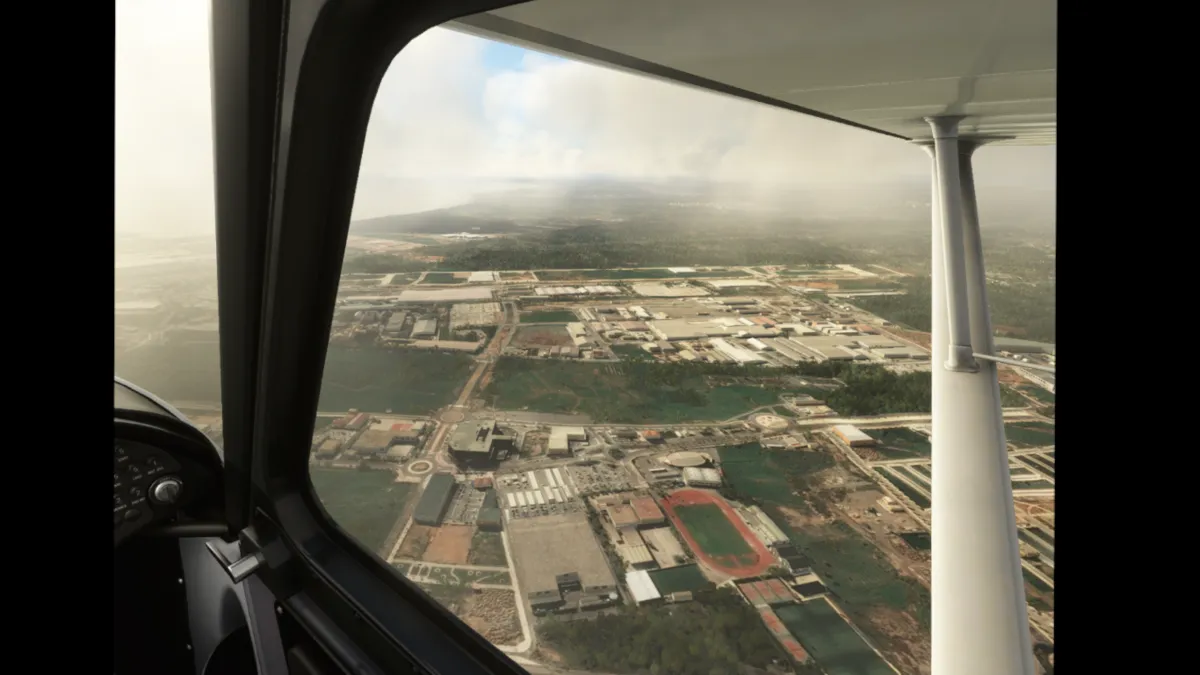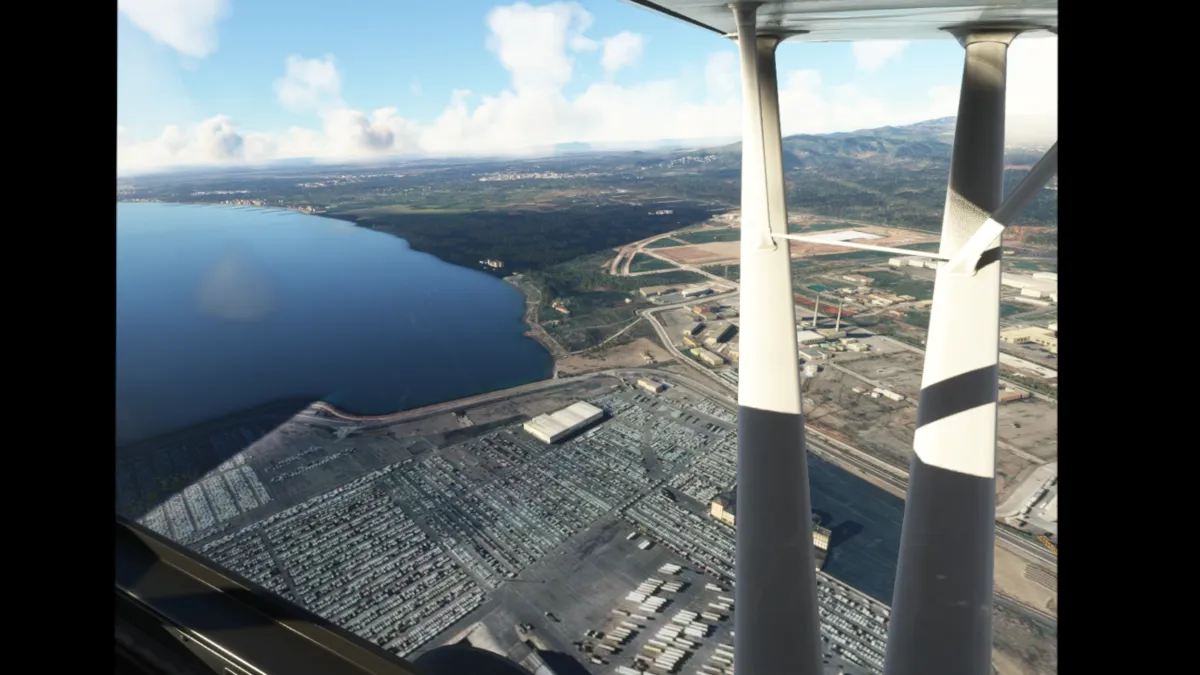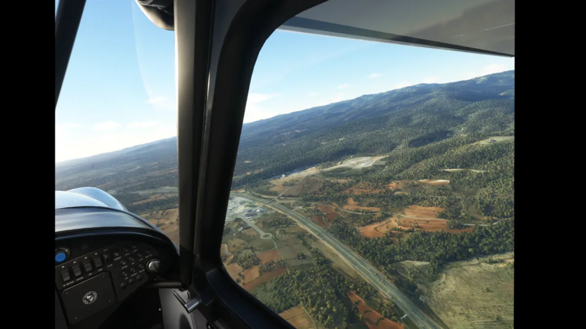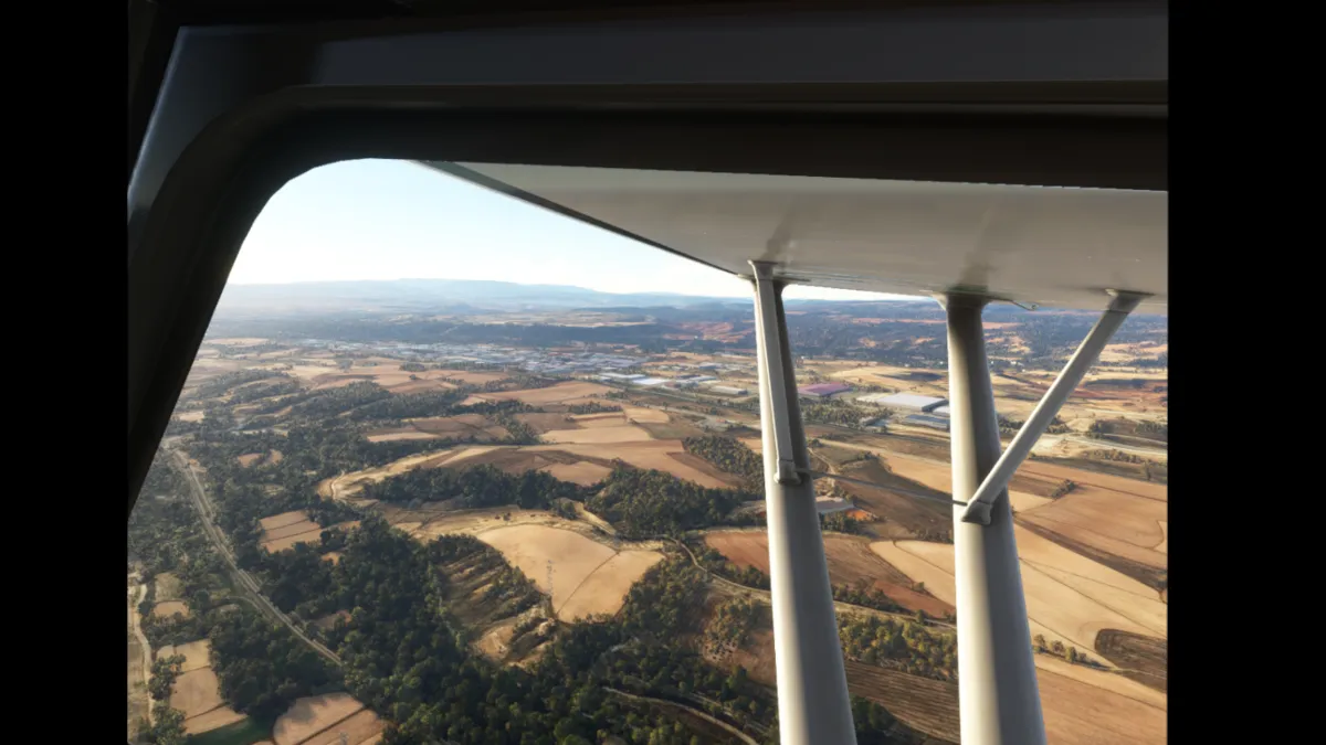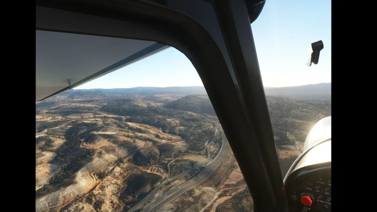 Salimos por pista 18 (sin hacer bactrack, ya que es una pista larga) y giramos directamente al punto de notificación Echo. Luego seguimos la autopista Mudejar A-23 rumbo sureste. Rodeamos el aeródromo de El toro por el oeste saliendo por río Palamencia al sur del campo y luego seguimos al sureste hasta llegar al puerto de Sagunto.