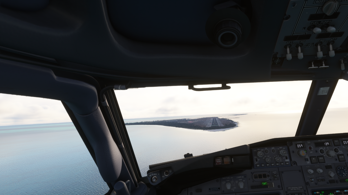 Se realizó la llegada mediante aproximación RNAV, y aterrizar en la pista 06 del aeropuerto PMDY – alt. 12 ft. – Henderson Field Airport, Midway Islands, USA