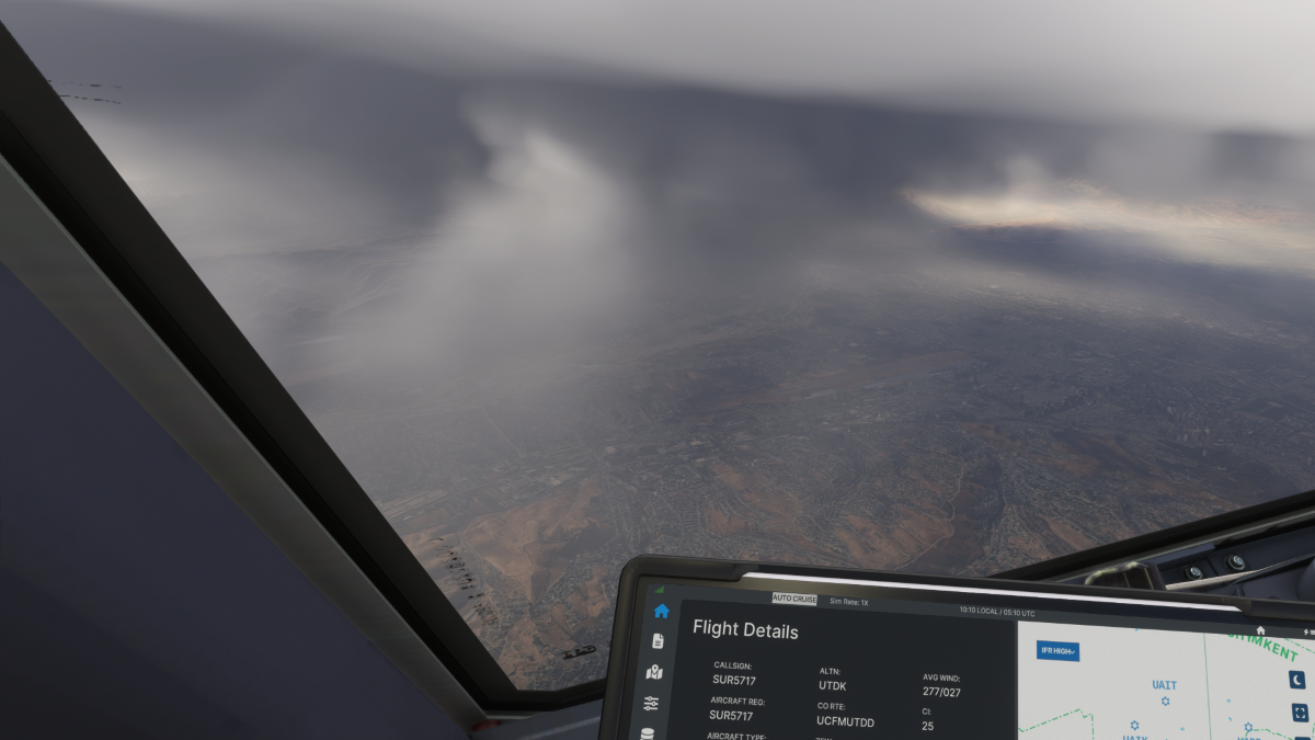 El 18/02/2026 realizamos la etapa 076 del tour mundial con reglas de vuelo instrumental. Volamos desde el aeropuerto VUCFM – alt. 2090 ft. – Bishkek-Manas Airport, Chuy, Kyrgyzstan