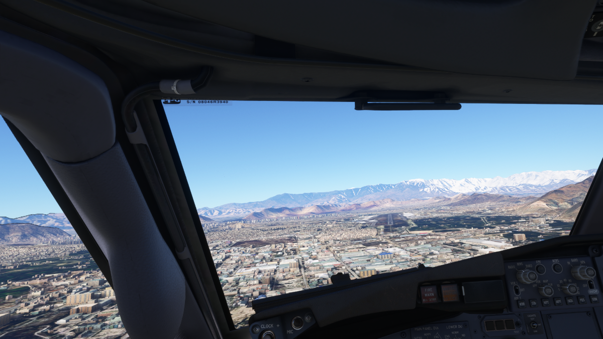 Se realizó la llegada mediante aproximación ILS transición WEBRO para aterrizar en la pista 29 del aeropuerto OAKB – alt. 5877 ft. – Kabul International Airport, Kabul, Afghanistan