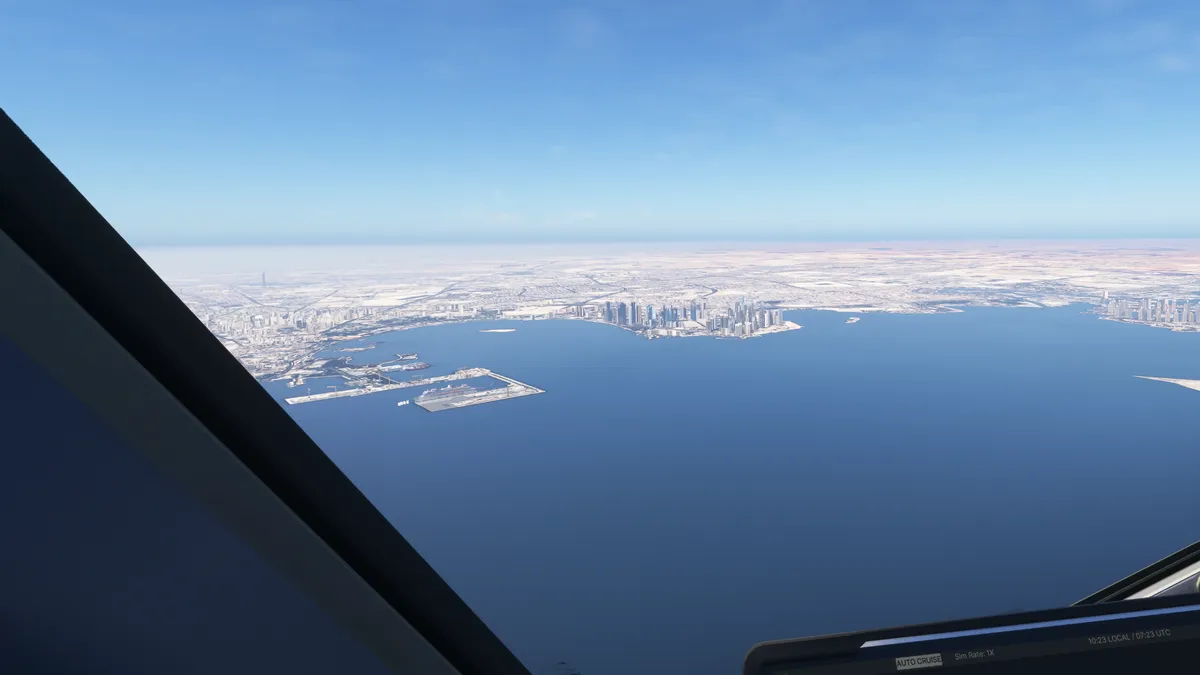 El 11/03/2026 realizamos la etapa 084 del tour mundial con reglas de vuelo instrumental. Volamos desde el aeropuerto OTHH – alt. 13 ft. – Hamad International Airport, Ad Dawhah, Qatar
