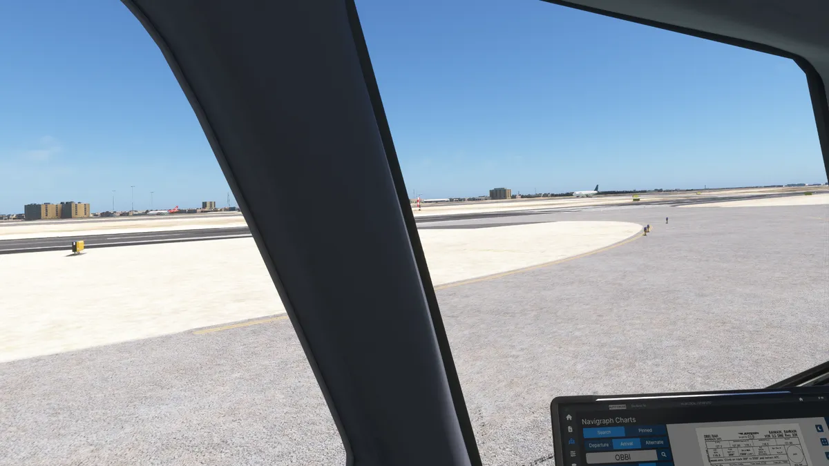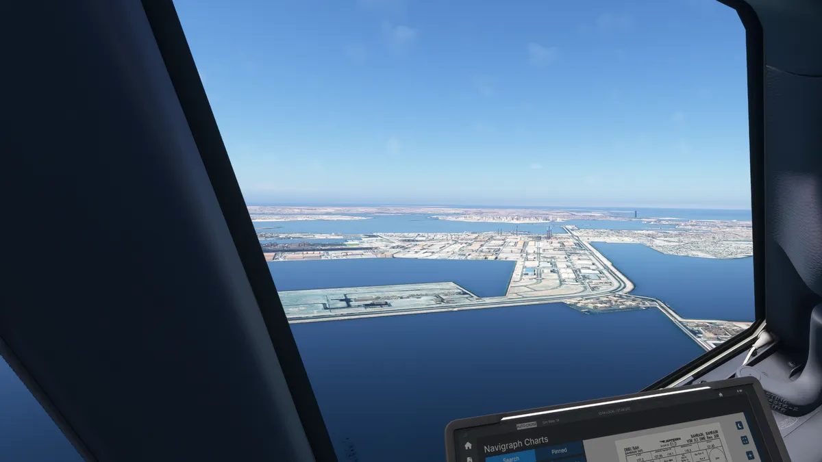 Se realizó la llegada mediante aproximación por VOR/ILS transición BHR para aterrizar en la pista 30R del aeropuerto OBBI – alt. 8 ft. – Bahrain International Airport, Muharraq, Bahrain