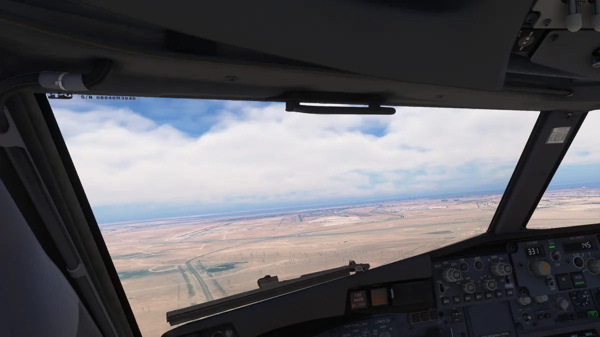 Se realizó la llegada mediante STAR DEBTI 1H aproximación ILS transición PEDEL para aterrizar en la pista 33L del aeropuerto OKKK – alt. 204 ft. – Kuwait International Airport, Al Farwaniyah, Kuwait