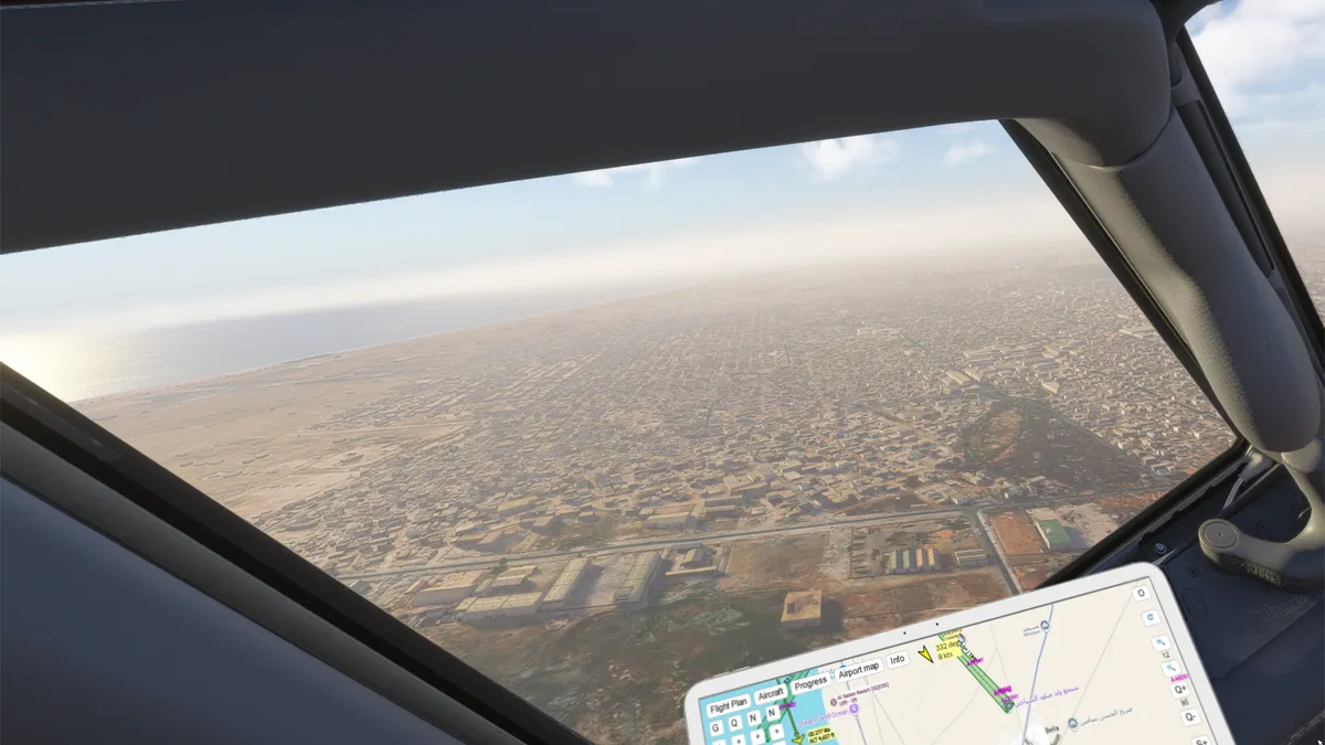 Se realizó la llegada mediante aproximación ILS-Z, transición LOSNA, para aterrizar en la pista 06 del aeropuerto GQNO – alt. 9 ft. – Nouakchott Oumtounsy Airport, Nouakchott, Mauritania