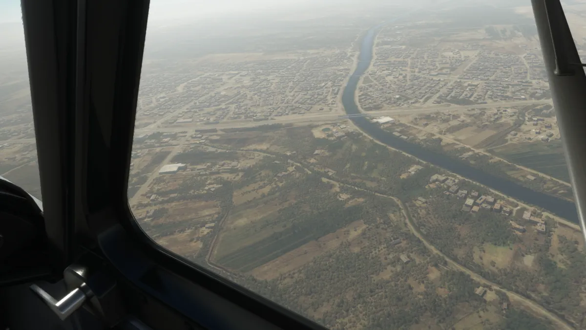El 29/04/23 realizamos la etapa 107 del tour mundial con reglas de vuelo visual. Volamos desde el aeropuerto Al-Ashraf Intl (ORNI) Iraq, despegando desde pista 10 y prosiguiendo luego la ruta hacia el sureste.