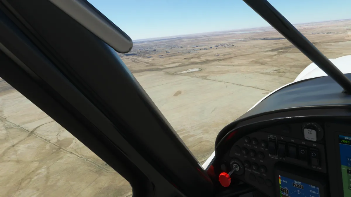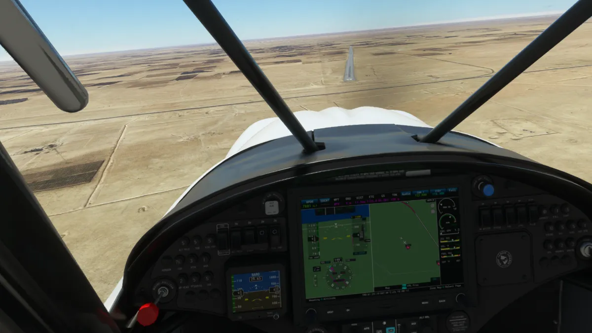 La primera hora de vuelo fue bastante aburrida, ya que era puro desierto iraquí, pero más adelante encontramos varios aeropuertos (principalmente militares) donde hacer tomas y despegues:
