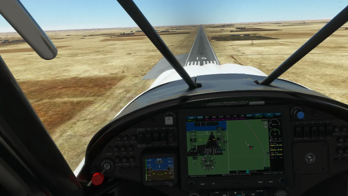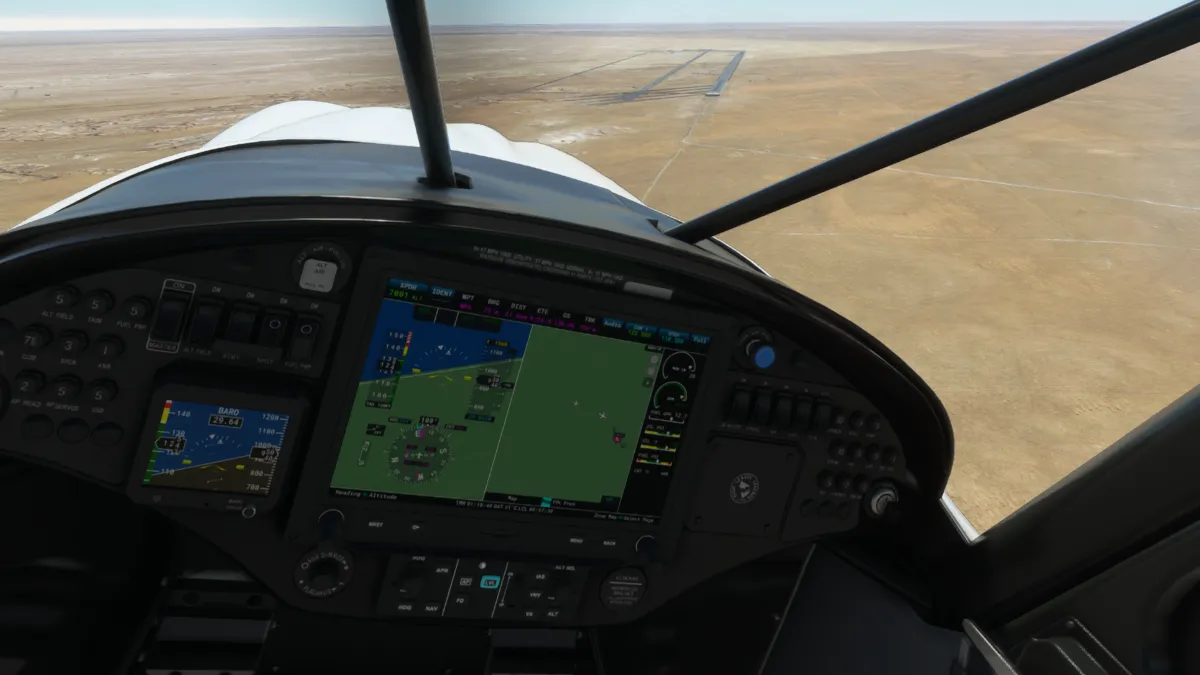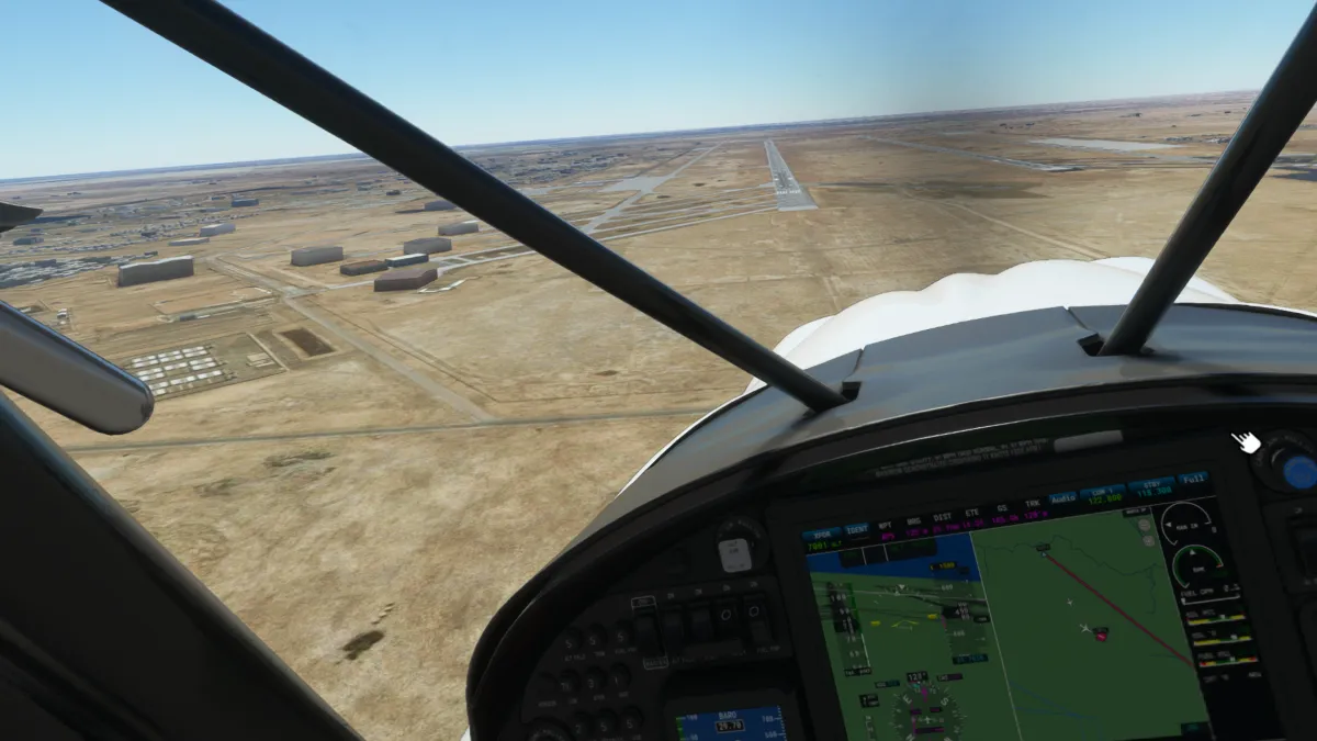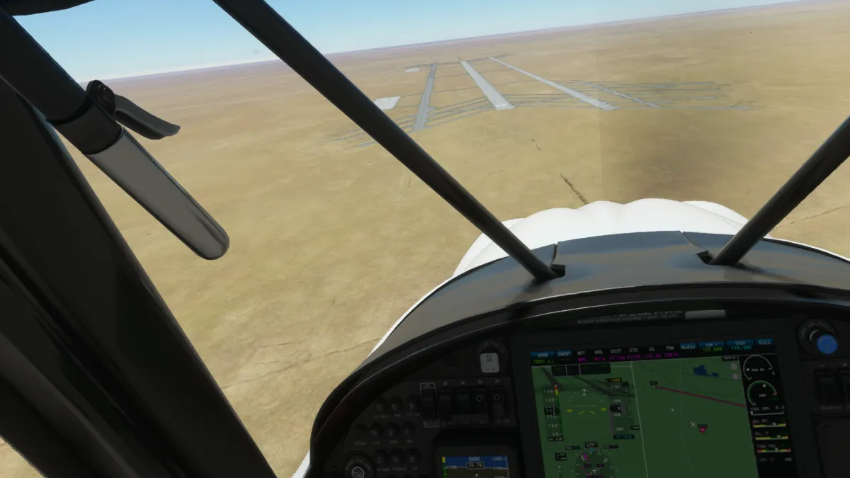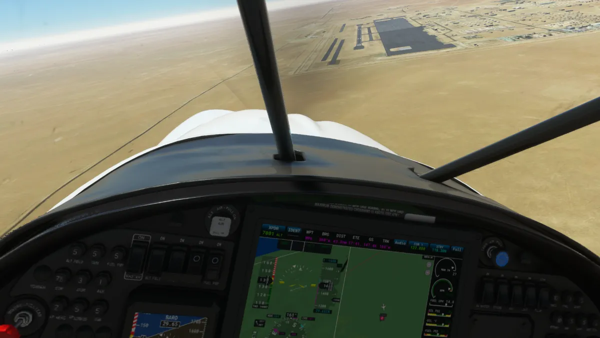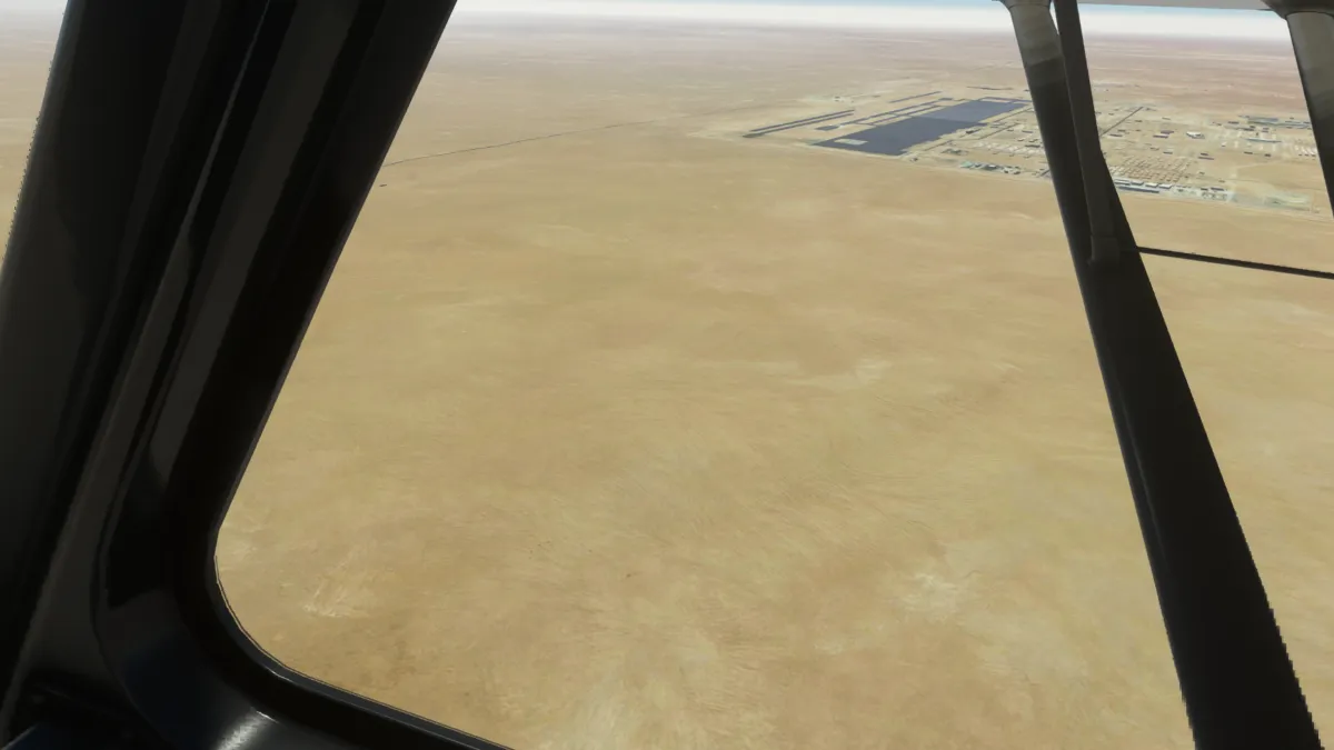 Ya muy cerca del destino, la última toma y despegue fue en el aeropuerto militar de Udairi AAF (OKDI), ingresando directamente en final de la pista 18.