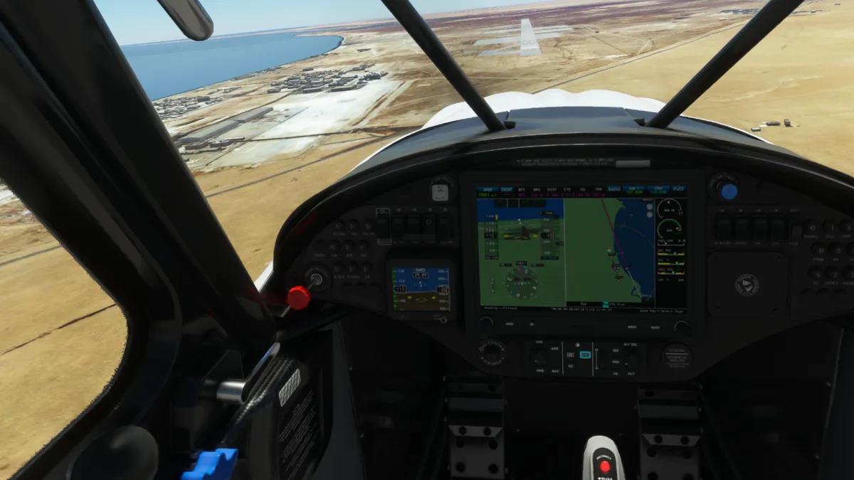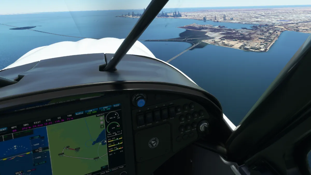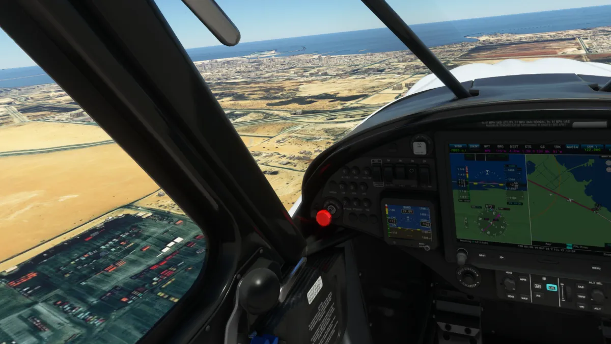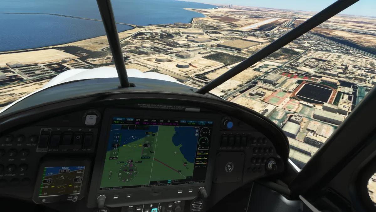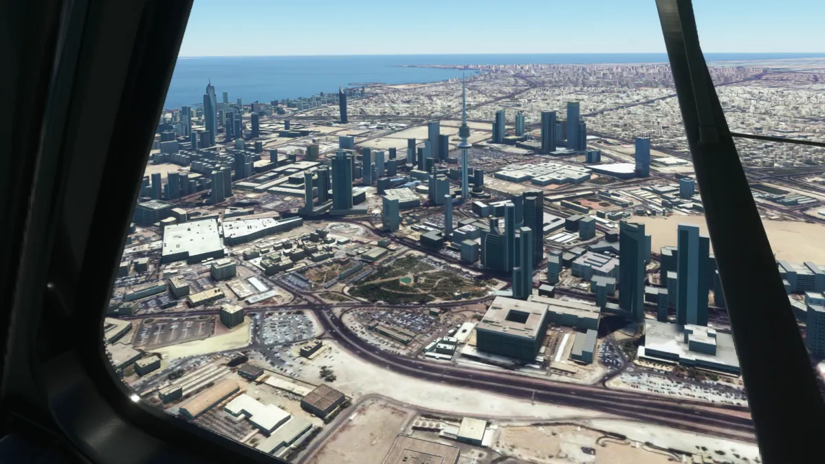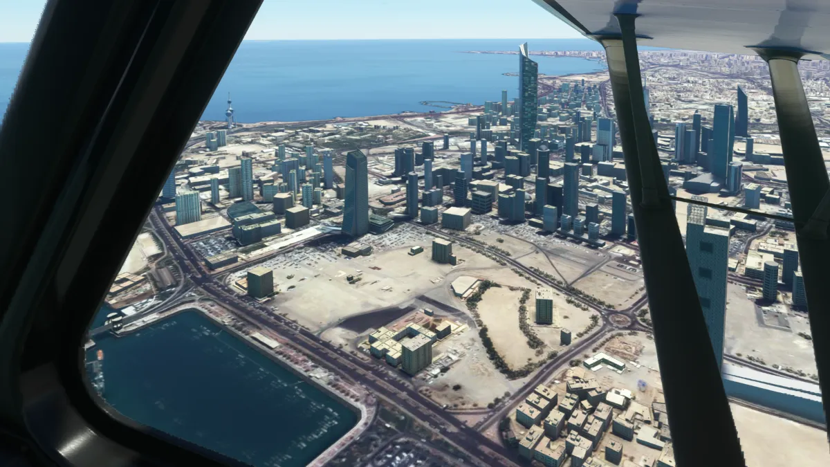 Ingresamos a viento en cola del circuito a derechas para luego dirigirnos hacia la bahía de Al-Hishan para sobrevolar a posterior la costa de la ciudad de Kuwait y sus emblemáticos edificios y monumentos.