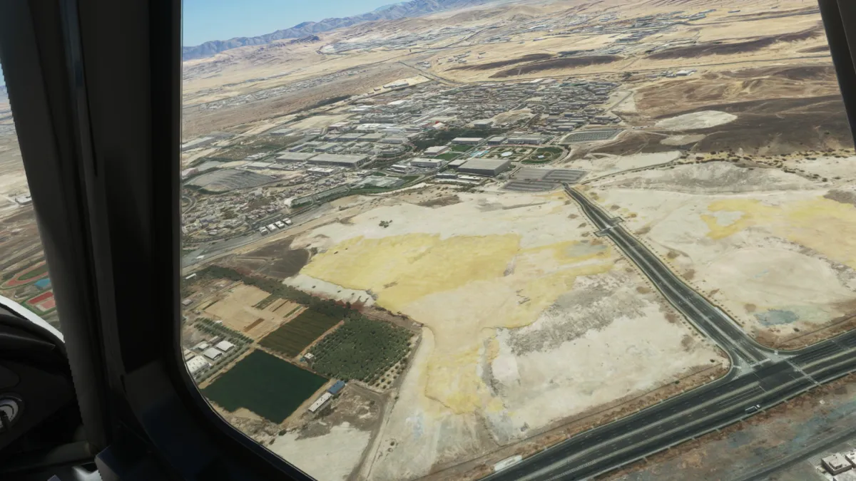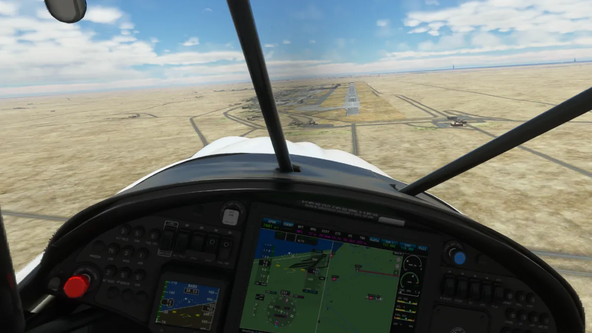 Tras despegar nos dirigimos hacia el sureste por pedido del control de torre del aeropuerto internacional en Dubai, por lo que cambiamos nuestra primera toma y despegue para la base militar Minhad AB (OMDM) donde ingresamos viento en cola al circuito a izquierda de la pista 27.