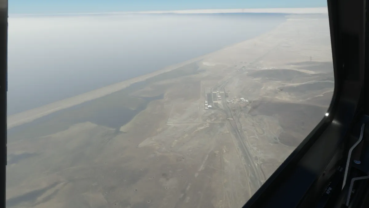 Luego, ya siguiendo la línea de costa, sobrevolamos el aeropuerto (clausurado) de Sohar (OOSH).