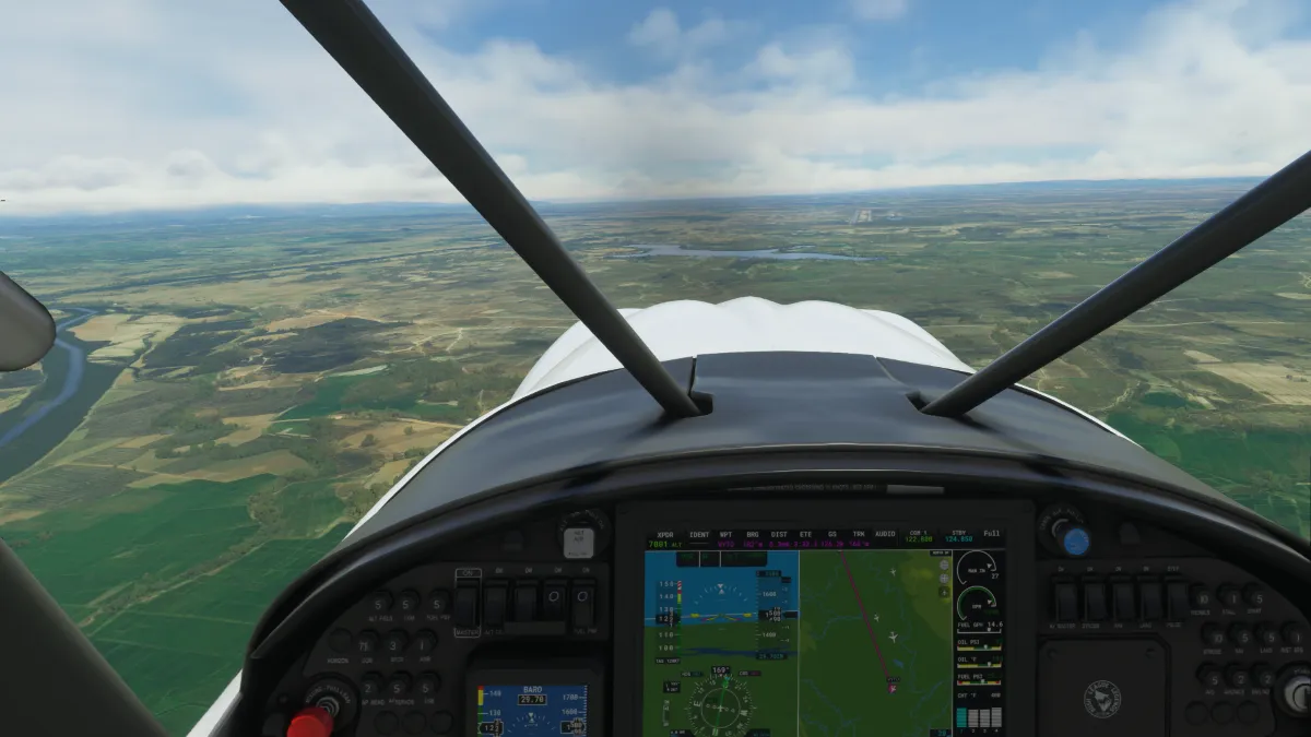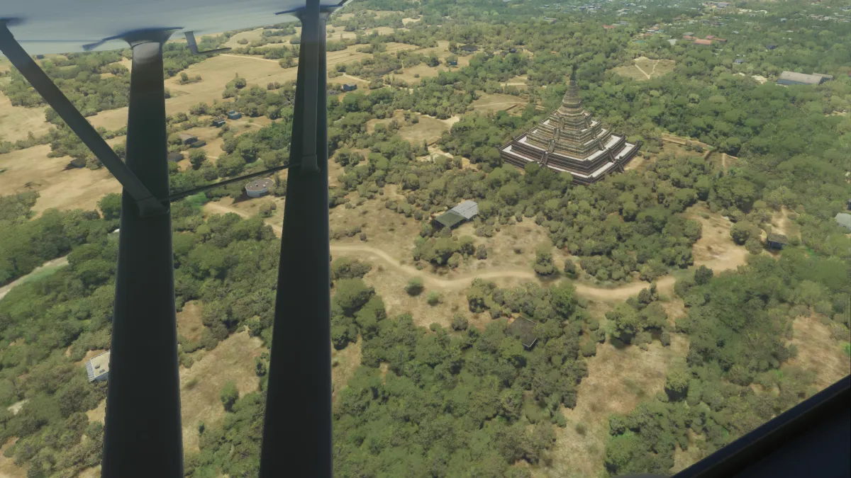 Continuando al sur siguiendo el río Irrwaddy realizamos una primera toma y despegue (fuera de la ruta originalmente planificada) en el aeropuerto Lanywa (VYLY) tomando por pista 18 y tras el despegue dirigiéndonos al este, para proseguir con la ruta planificada.