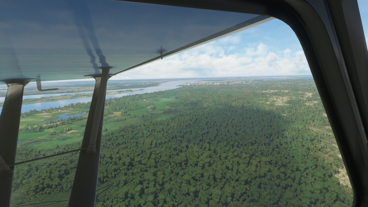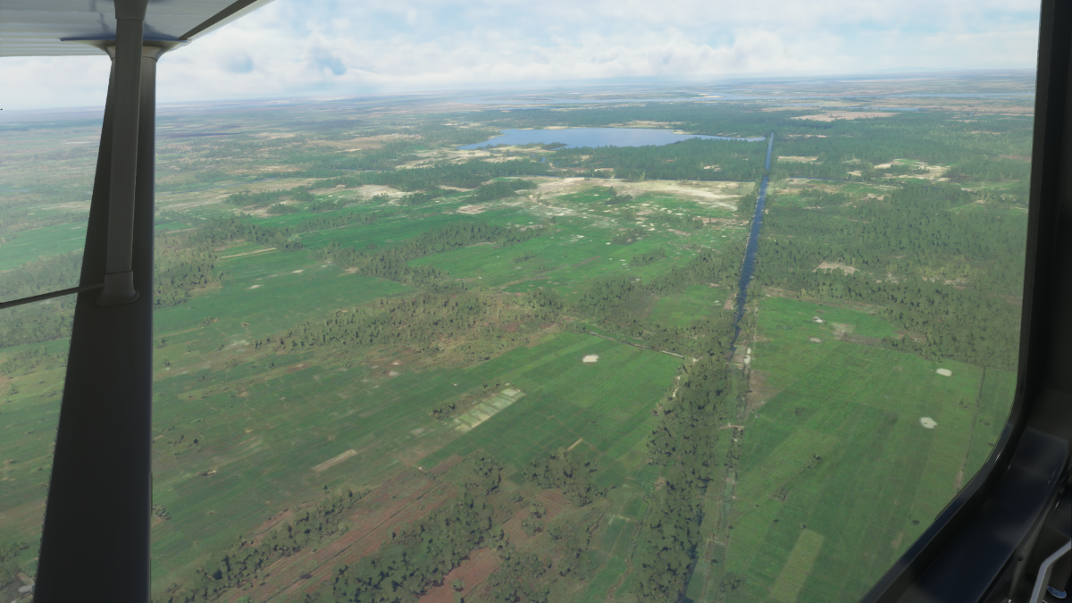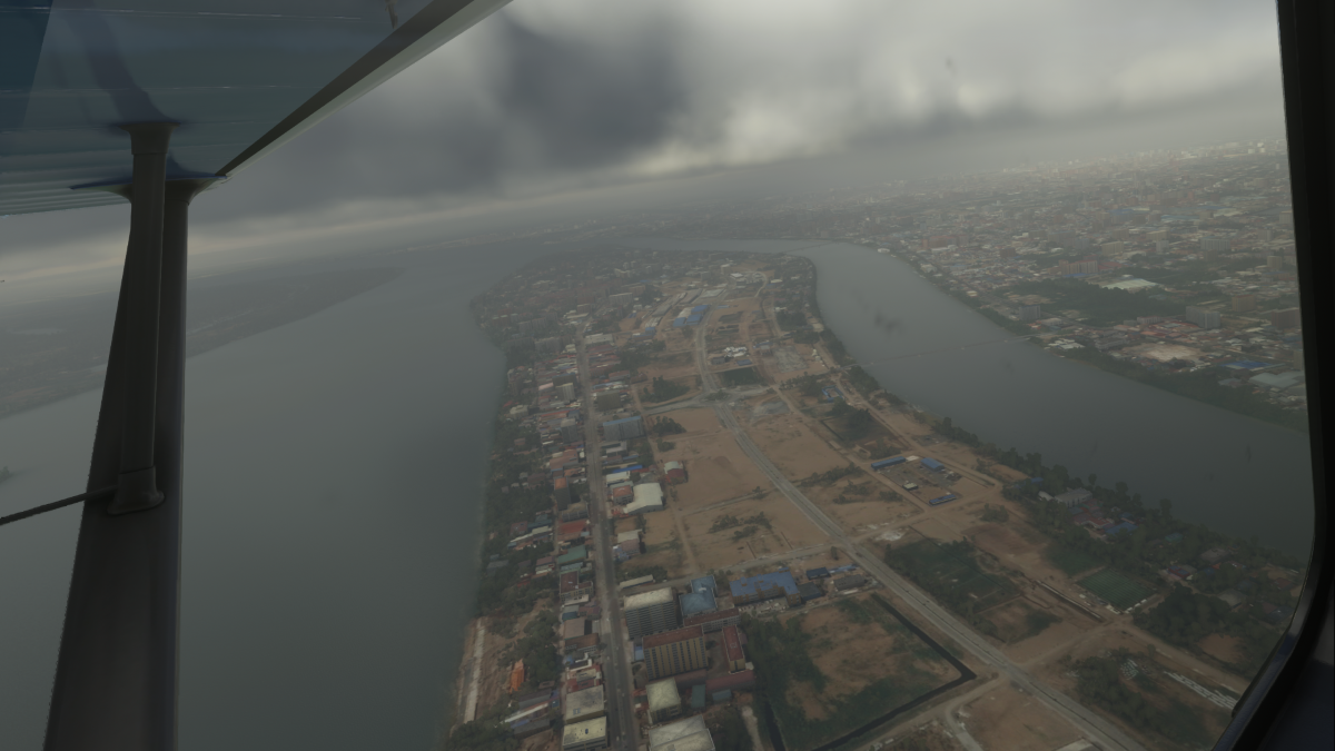 Tras cruzar la frontera entre Vietnam y Camboya, nos desviamos un poco de la ruta hacia la ciudad de Kompong para realizar una segunda toma y despegue en el aeropuerto de Kompong Cham Airport (VDKC) a donde nos aproximamos vía base y final a izquierda para la pista 23.