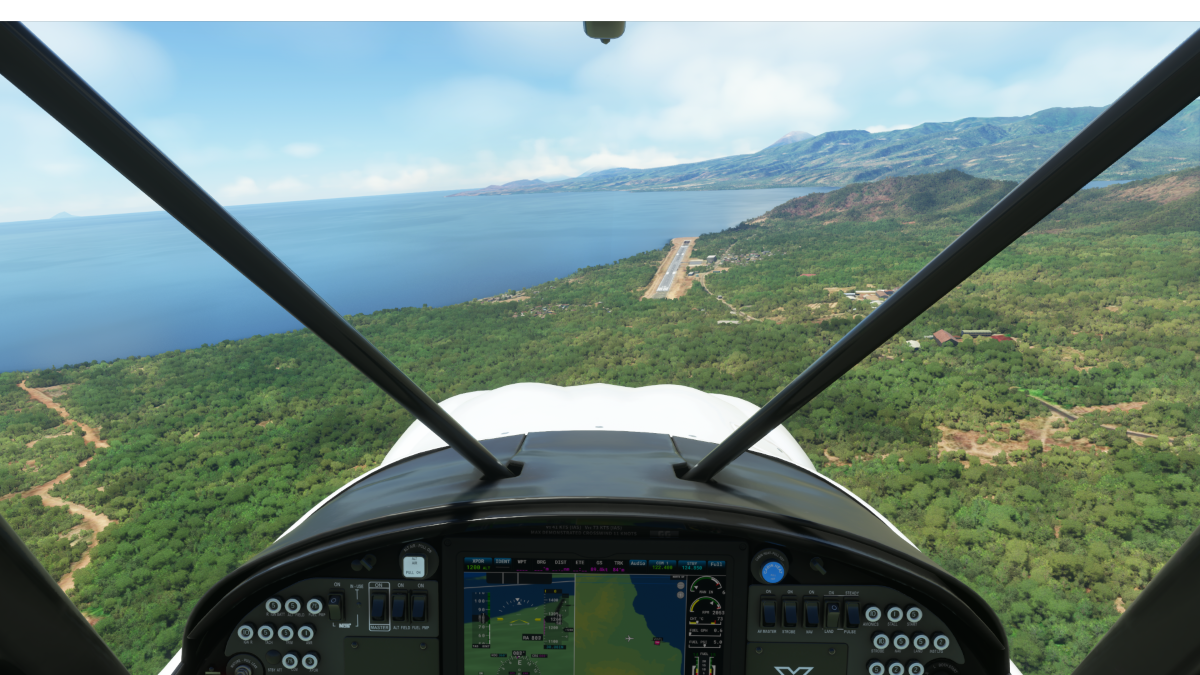 Tras sobrevolar las islas de Komodo, realizamos la primera toma y despegue en Mutiara Ii (WATO), ingresando a viento en cola del circuito a derecha de la pista 17.