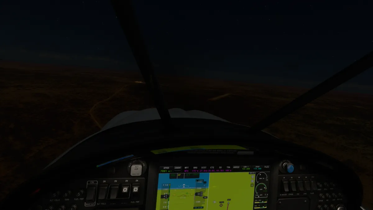 Unas 25 millas adelante, la segunda toma y despegue (en realidad acá aterrizamos e hicimos una pausa hasta que amanezca porque estaba muy oscuro) donde también ingresamos a final de la pista 15.