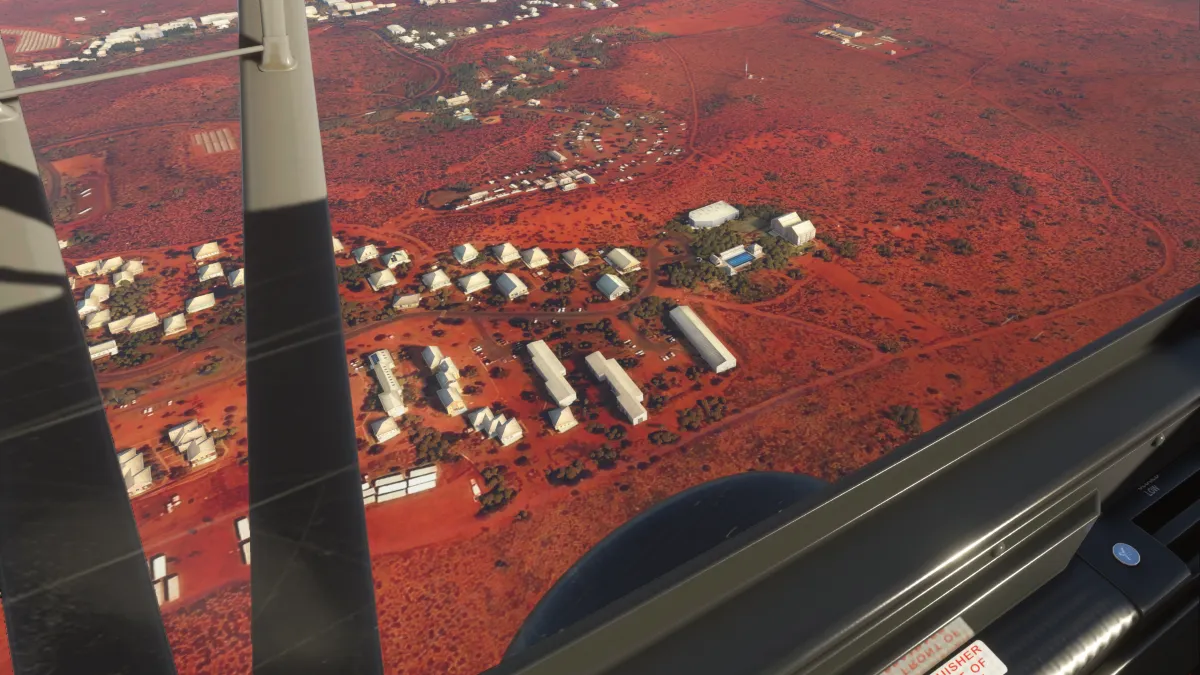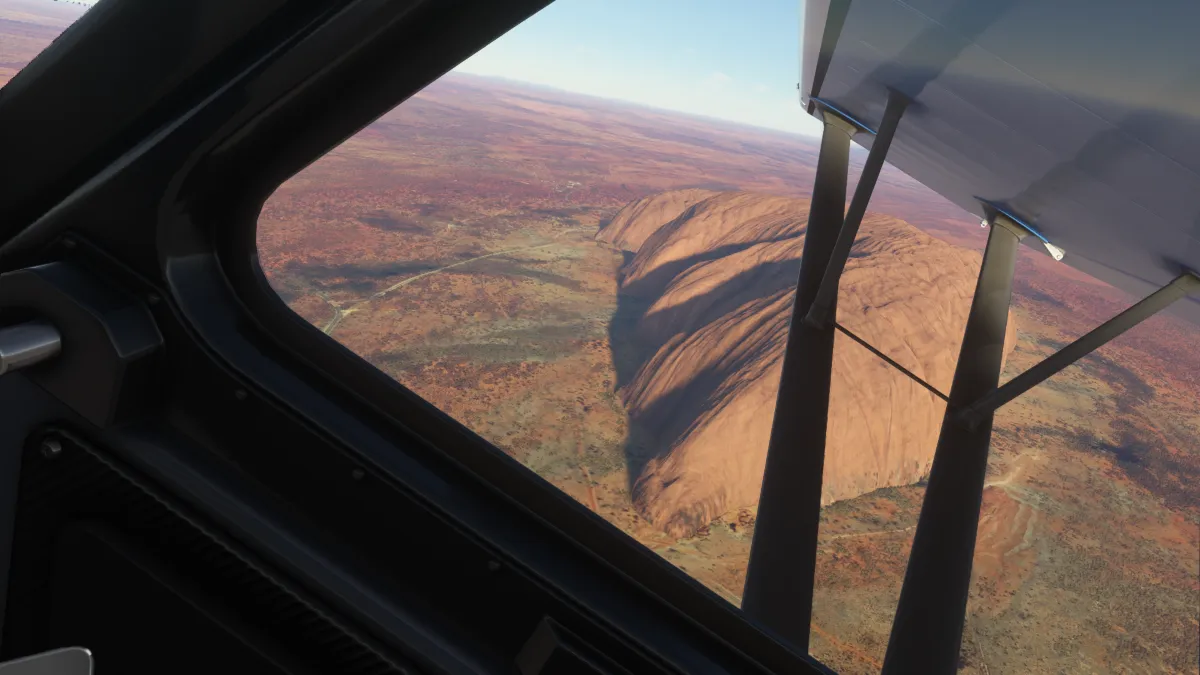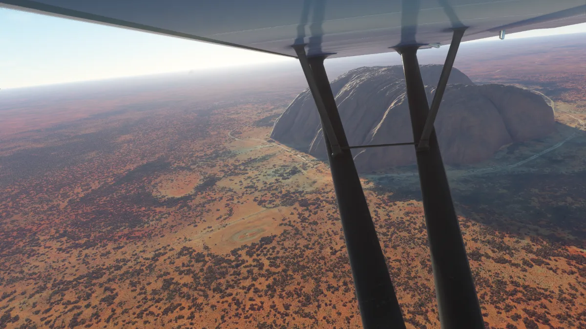 Desde allí ya nos dirigimos al destino, pero primero extendimos el vuelo para rodear la famosa Uluru o Ayers Rock, el impresionante monolito de piedra arenisca situado en el Parque Nacional Uluru–Kata Tjuta. Luego ya pusimos rumbo para la aproximación mediante base y final (a izquierda) para aterrizar en la pista 31 del aeropuerto Ayers Rock / Connellan (YAYE) Australia.