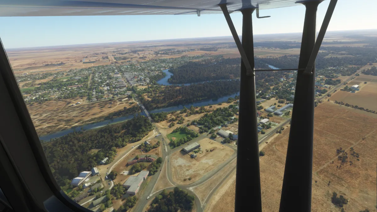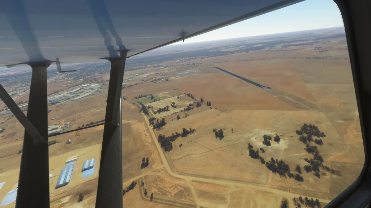 Echuca (YECH), ingresando viento en cola del circuito a derecha para la pista 35.
