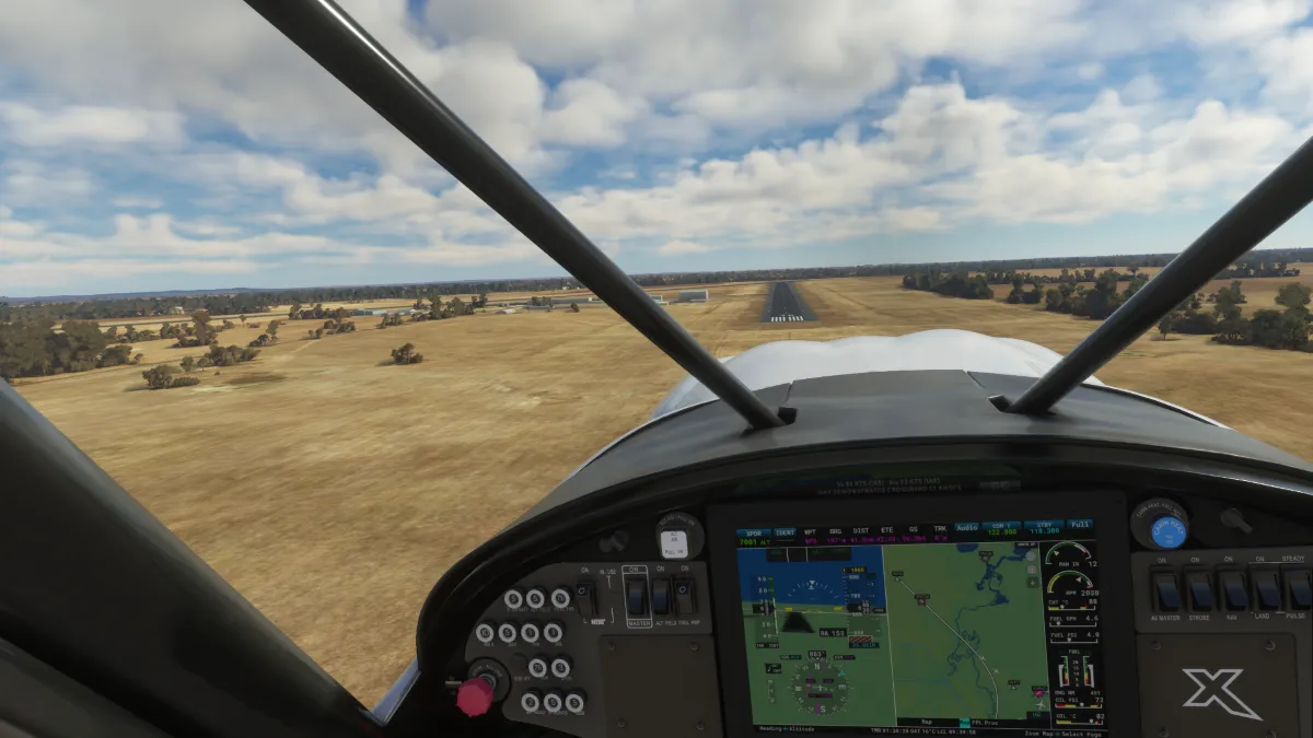 El 11/10/23 realizamos la etapa 155 del tour mundial con reglas de vuelo visual. Volamos desde el aeropuerto Hay (YHAY) en Australia, despegando desde la pista 33.Al ir acercándonos a la costa sur de
