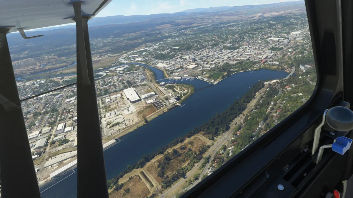 Desde allí nos dirigimos al destino para realizar la aproximación mediante viento en cola del circuito a izquierda para aterrizar en la pista 32L del aeropuerto Launceston (YMLT) Australia.