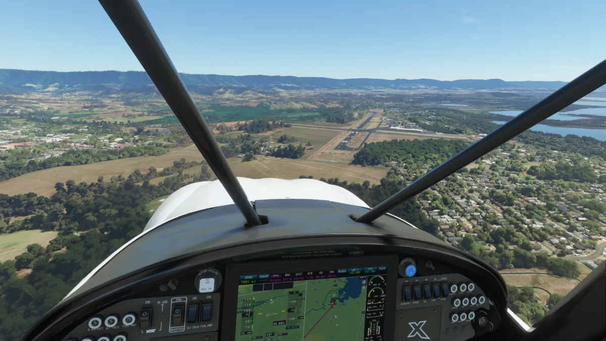 Desde allí nos dirigimos al destino para realizar la aproximación mediante viento en cola del circuito a izquierda para aterrizar en la pista 29R del aeródromo Bankstown (YSBK) en Australia.