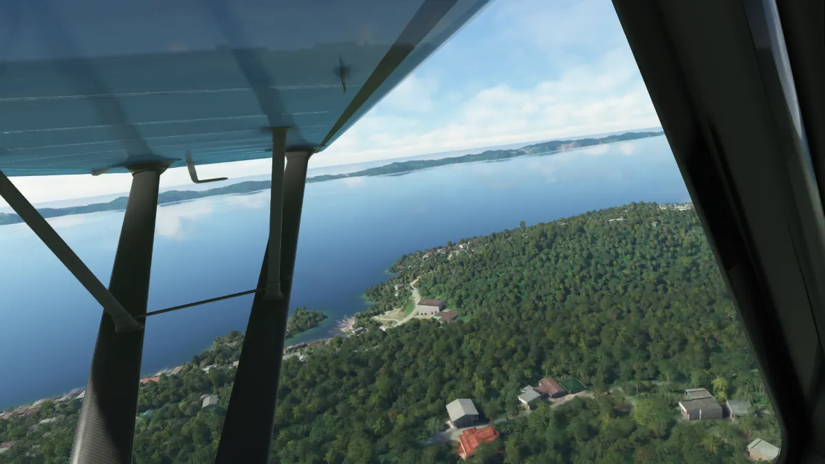 La segunda en la isla de Maluku, tras cruzar el mar de Ceram, en el aeródromo de Bula Airport (WAPB), ingresando a base y final para la pista 29.