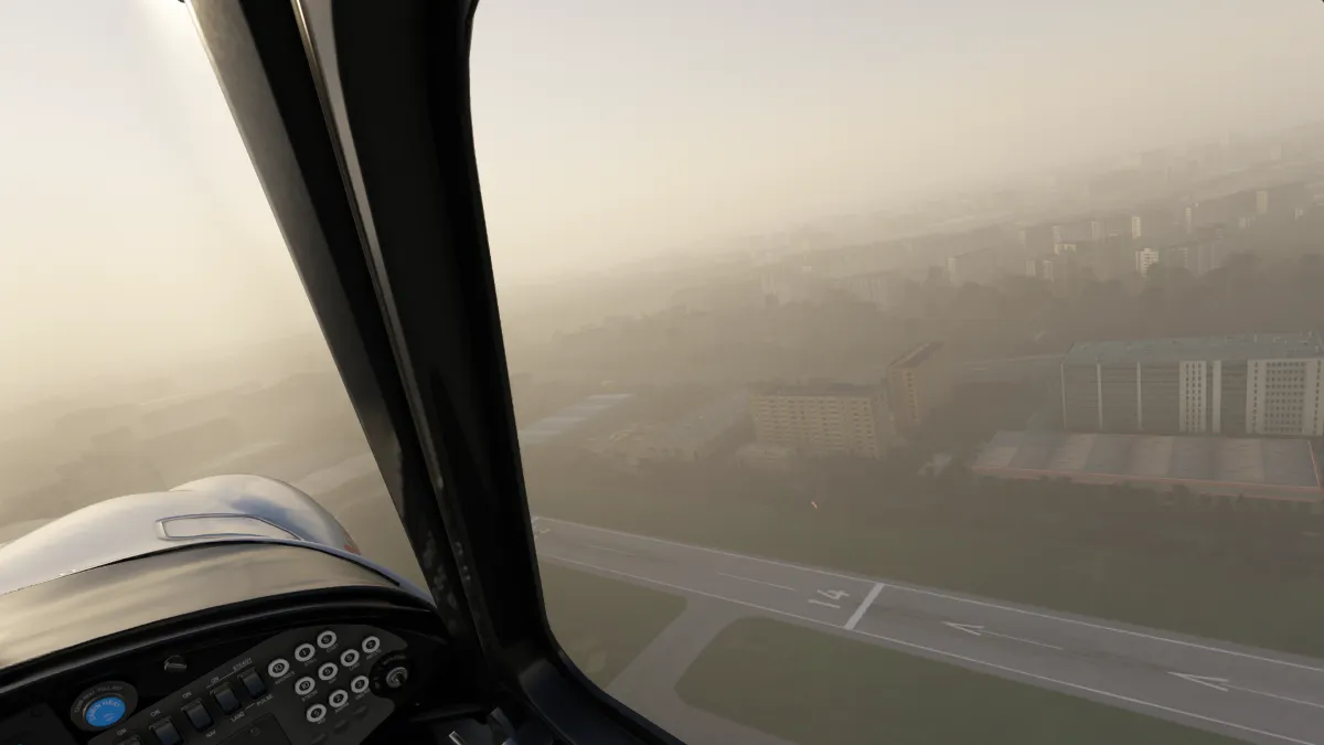Realizamos una primera toma y despegue en el aeródromo Yangpu Airport (ZYAP), ingresando en base y final para la pista 14.