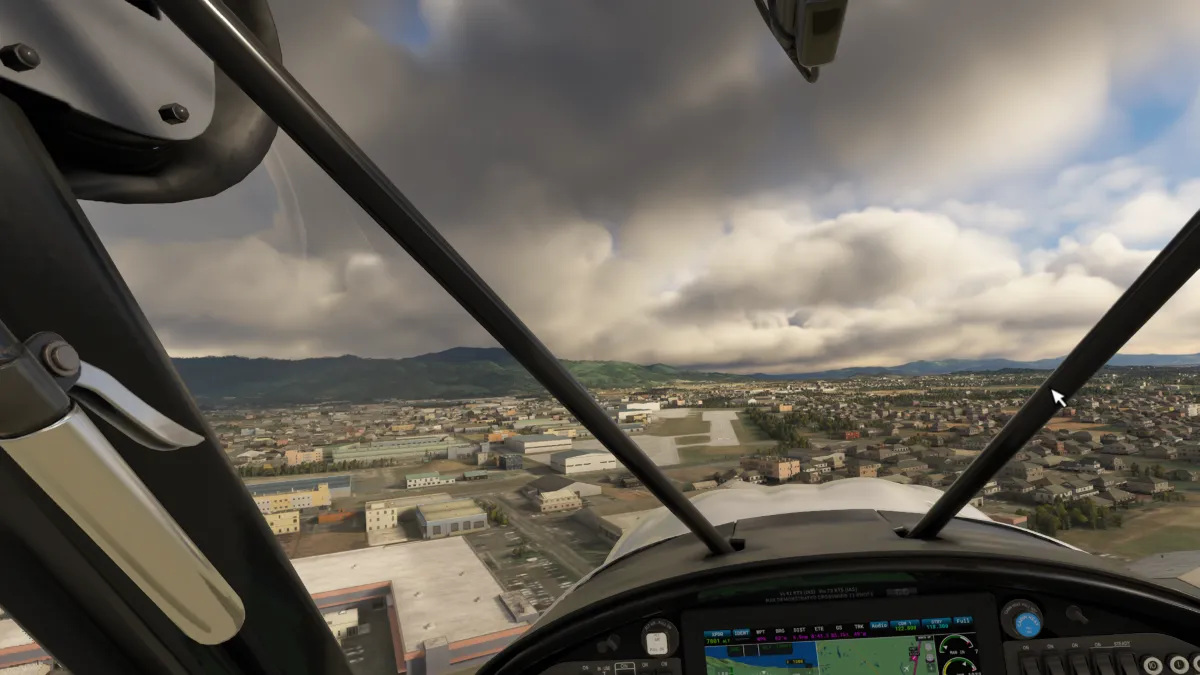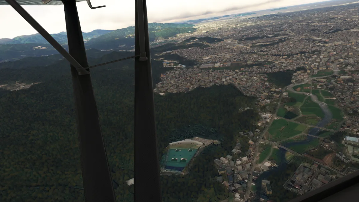 Desde allí nos dirigimos al destino para realizar la aproximación en final para aterrizar en la pista 36 del aeropuerto Kitakyushu (RJFR), Japan