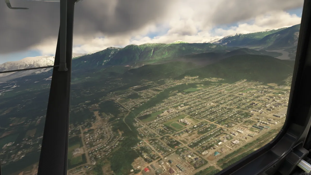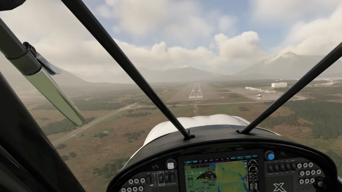 Desde allí nos dirigimos al destino para realizar la aproximación en base y final derecha para aterrizar en la pista 15 del aeropuerto CYXT Terrace (Canada).