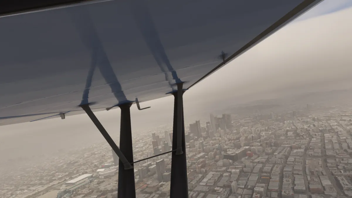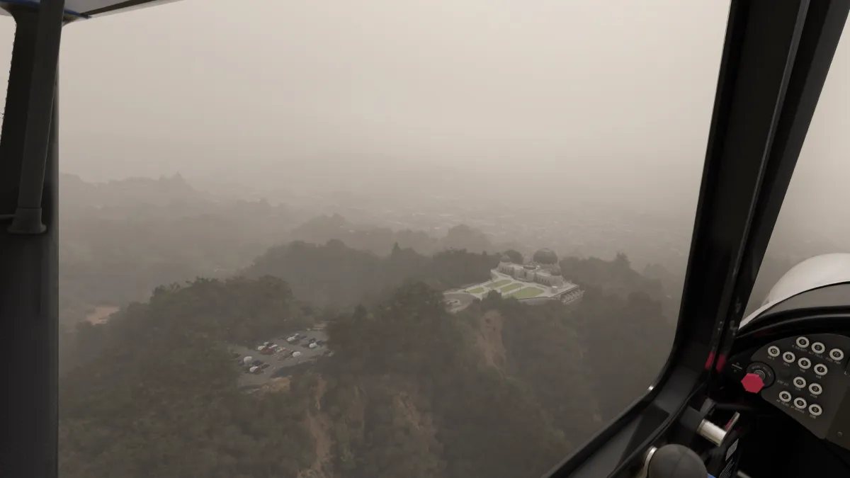 El vuelo transcurrió en dirección sureste, volando en el estado de California en USA, llegando a la zona de Los Angeles, sobrevolando el observatorio Griphimg, con vista al cartel de Hollywood, Santa Mónica y vista al downtown de Los Angeles. Durante la etapa realizamos 8 tomas y despegues: