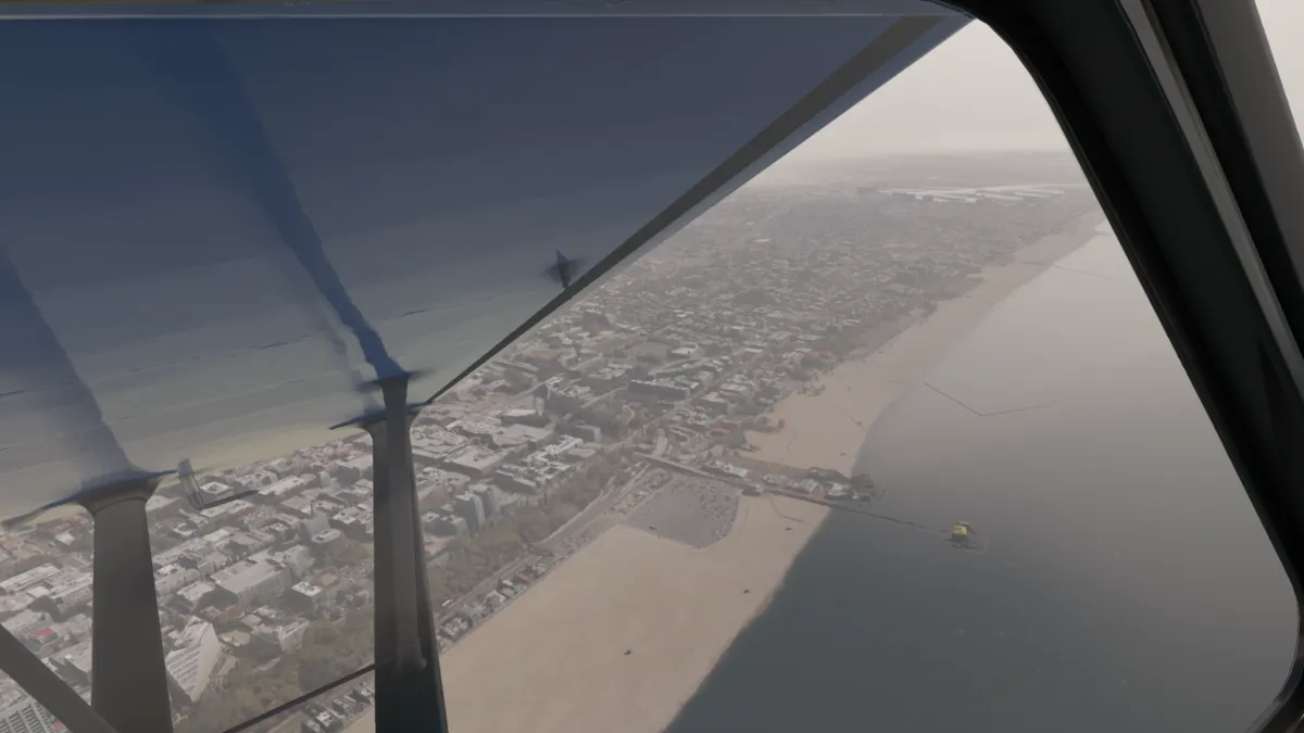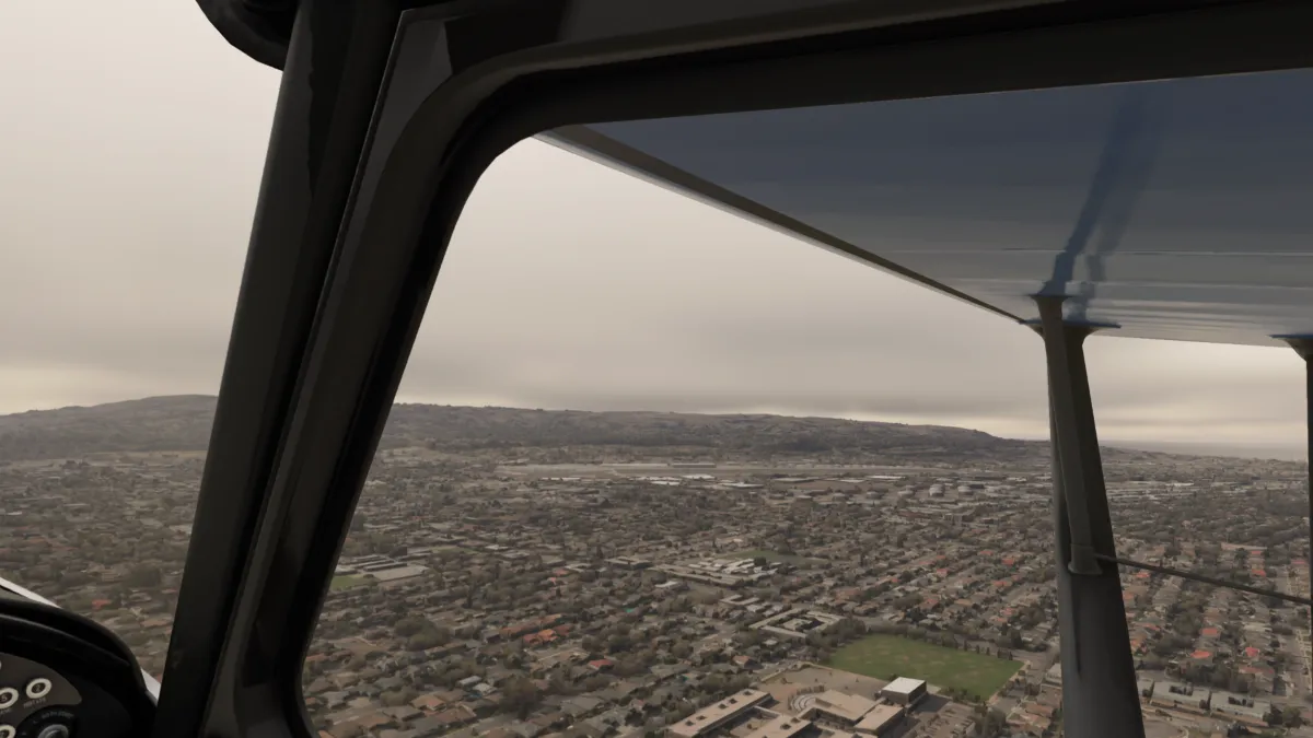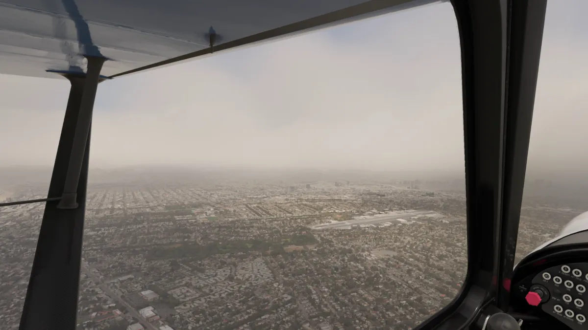 Desde allí nos dirigimos al destino, volando a 1800 pies a fin de eviar ingresar a los espacios B (bravo) del aeropuerto internacional de Los Angeles, y para realizar la aproximación en viento en cola a derecha para aterrizar en la pista 29R del aeropuerto KTOA Zamperini Field (United States of America).