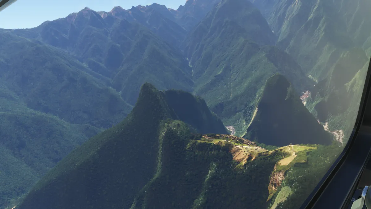 Volamos a traves de los valles para llegar a Machu Picchu, donde realizamos varios sobrevuelos.