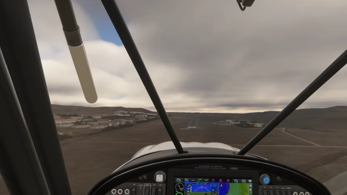 Desde allí nos dirigimos al destino para realizar la aproximación en viento en cola a izquierdapara aterrizar en la pista 27 del aeropuerto SC49 Oficina Victoria (Chile)