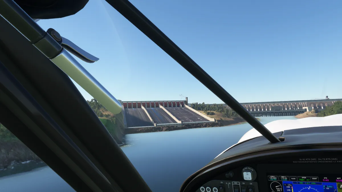 Desde allí nos dirigimos al destino para realizar la aproximación en viento en cola, circuito a derecha, para aterrizar en la pista 03 del aeropuerto SGIB Itaipu (Paraguay)