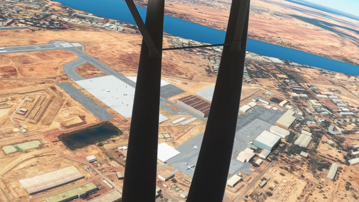 Abandonamos el lago Chad y seguimos el río Chari que demarca la frontera entre Camerún y Chad, aproximándonos finalmente a la ciudad de Ndjamena y tras frustrar el primer intento por pista 23 (pro problema del simulador que no respondía a los mandos) dimos una vuelta sobre el río y aterrizamos finalmente (ya que el viento era calmo) en la pista opuesta, pista 05 del aeropuerto de Hassan Djamous (FTTJ).
