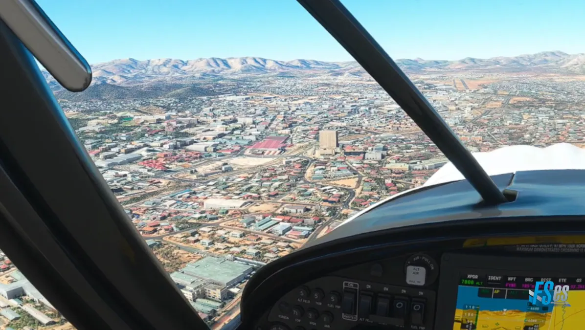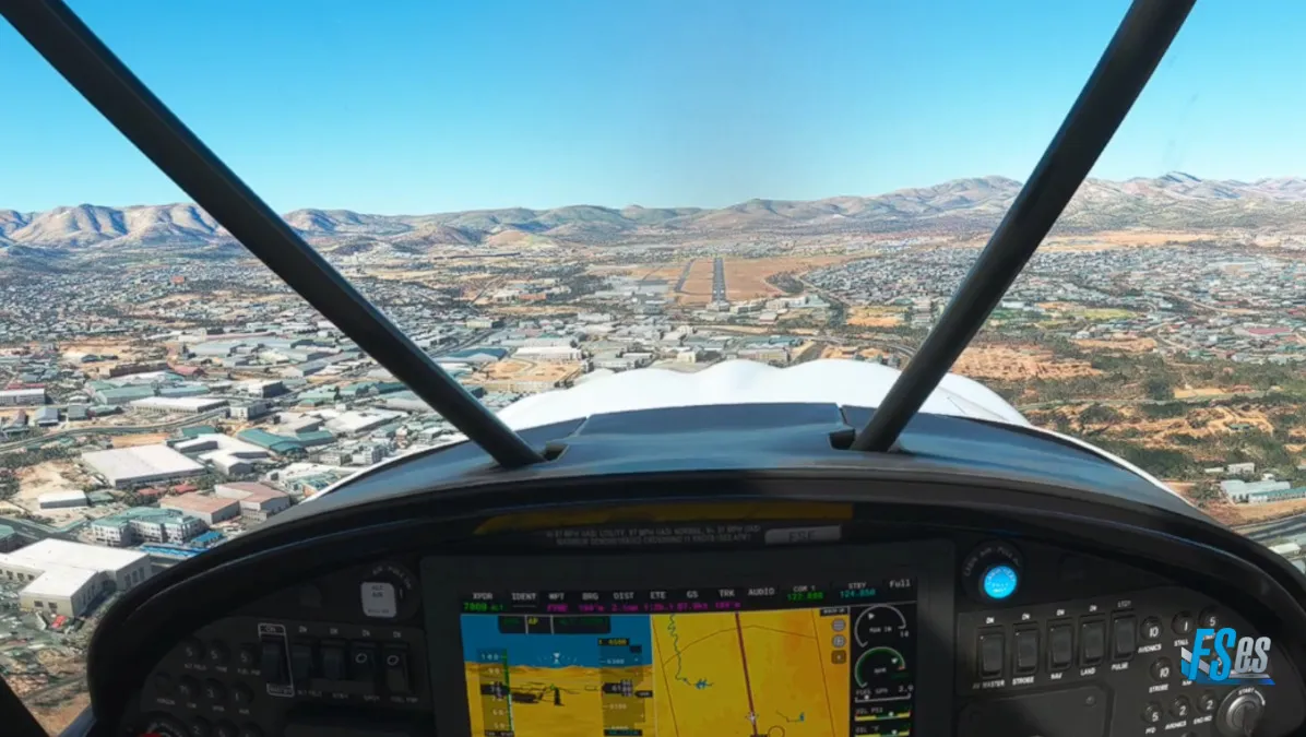 Y ya con rumbo final a destino, sobre la ciudad de Windhoek, nos aproximamos a final de la pista 19 de del aeropuerto Windhoek Eros (FYWE) donde finalizamos nuestra etapa.