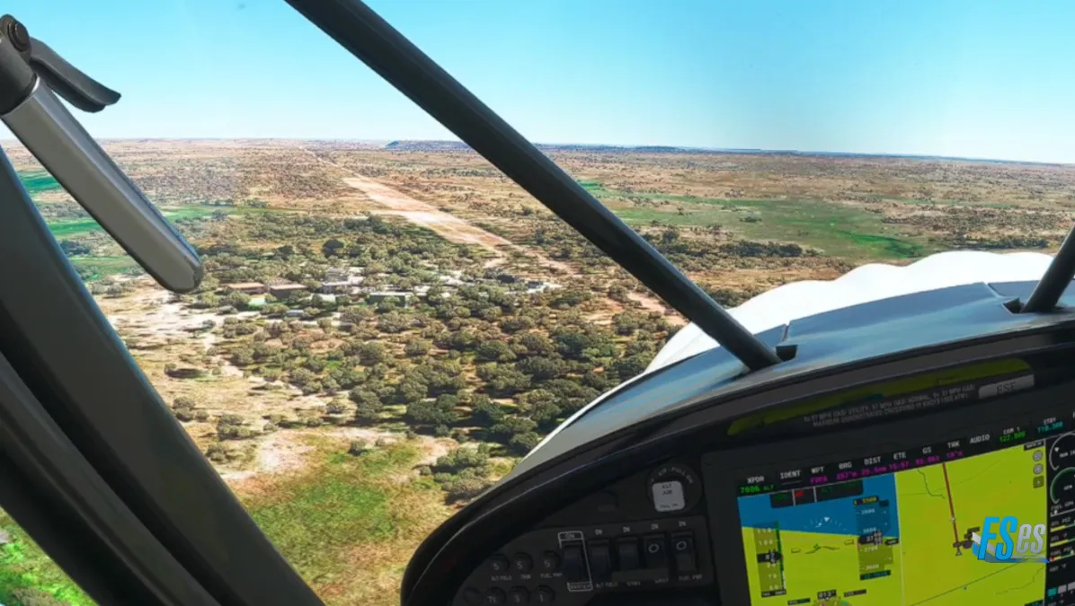 Luego de más de una hora de vuelo, nos aproximamos al pequeño aeródromo de Matetsi (FBPD) muy cerca de nuestro destino, todavía en Botswana tomando por pista 34, realizando base y giro a final hacia la derecha, guiándonos por un pequeño camino rural que nos dejó en cabecera.