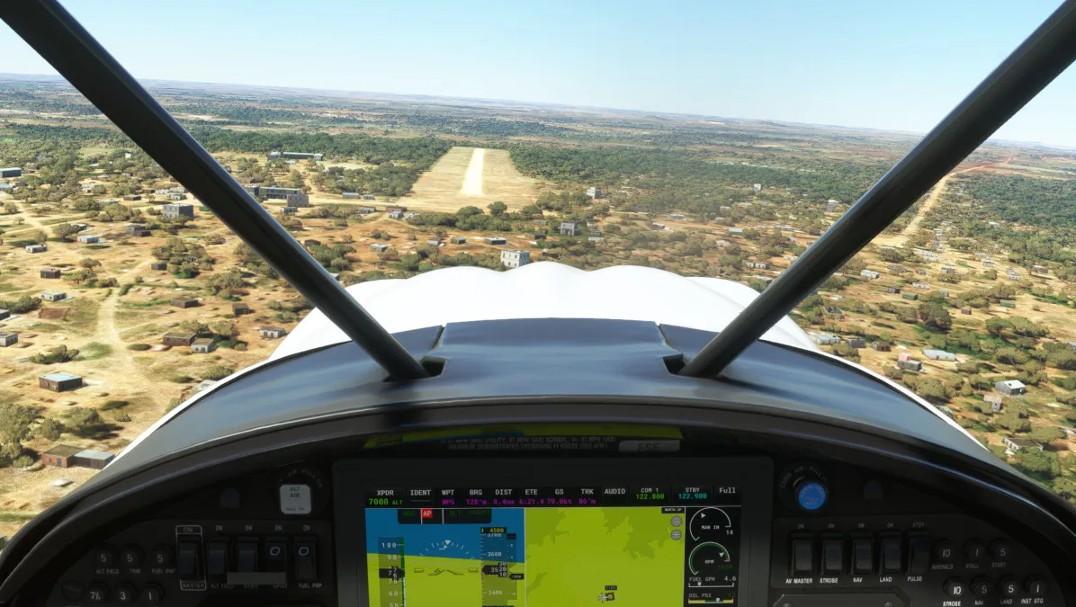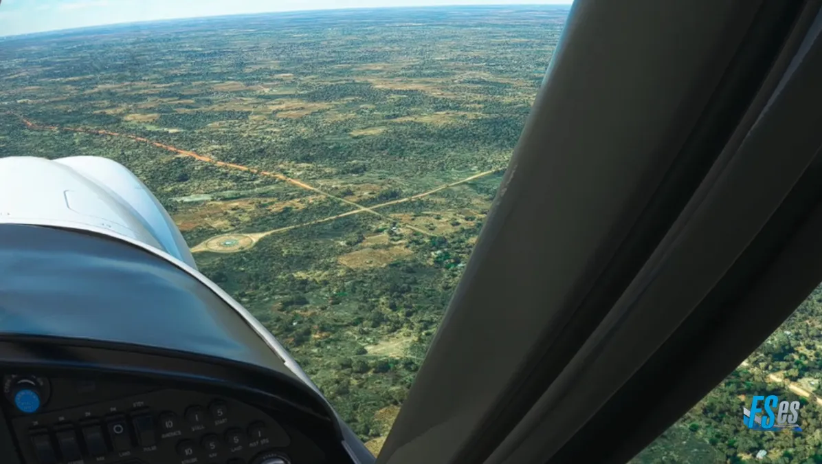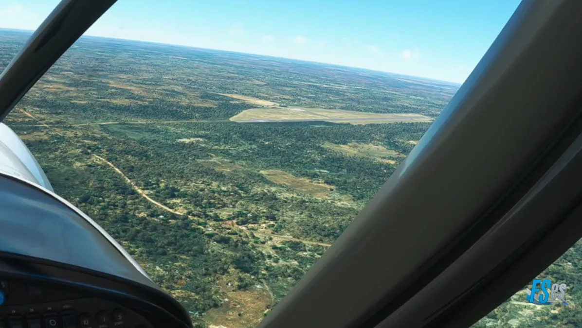 Nos dirigimos luego con rumbo sureste para aproximarnos a destino, incorporándonos a base y final de la pista 09 del aeropuerto de internacional de Mfuwe (FLMF) en la provincia oriental de Zambia.