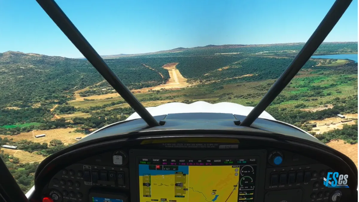 Un poco más adelante, la segunda toma y despegue en el aeródromo de Shiwa N’Gandu (FLSH), descendiendo sobre los cerros que se encuentran al este del mismo, e ingresar a final de la pista 09.