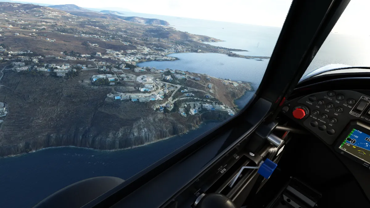 Pasamos luego por las islas de Ios y Paro, para luego diriginos a Mikonos, donde recorrimos la costa sur de este a oeste, para aproximarnos para otra toma y despegue en Mikonos (LGMK), ingresando base y final a derechas de la pista 34.