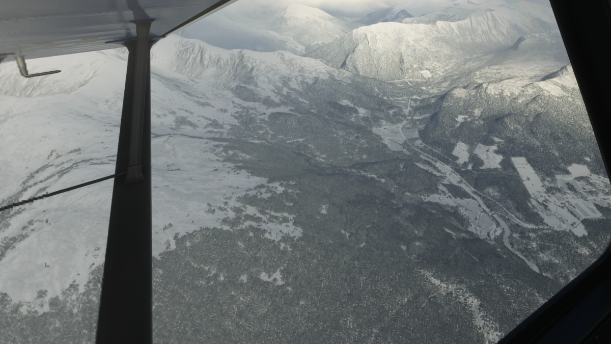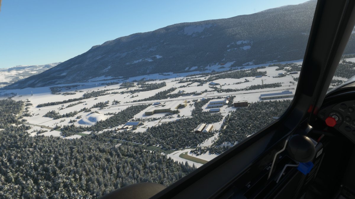 Luego tuvimos dos pequeños aeródromos muy cerca uno del otro, donde realizamos pasadas bajas, ya que los vientos estaban cruzados y muy fuertes; primero el de Rena Airfield Landsørkje (ENRE) al cual nos aproximamos en final de la pista 12; unas 8 millas a la izquierda, el de Ostre Aera (ENAE) donde realizamos la pasada baja por ingresando por pista 01.