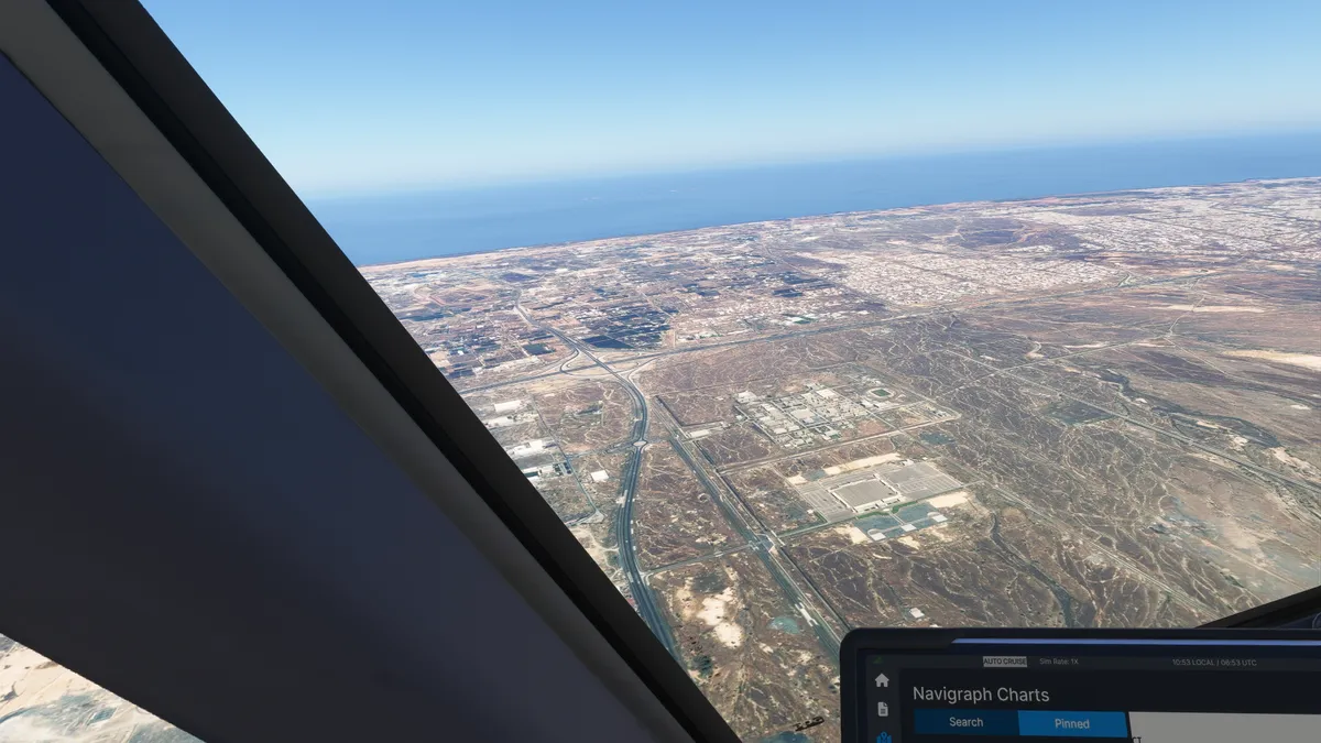 Se realizó la llegada mediante STAR VUSET 1A aproximación ILS transición BUBIL para aterrizar en la pista 08L del aeropuerto OOMS – alt. 25 ft. – Muscat International Airport, Muscat, Oman