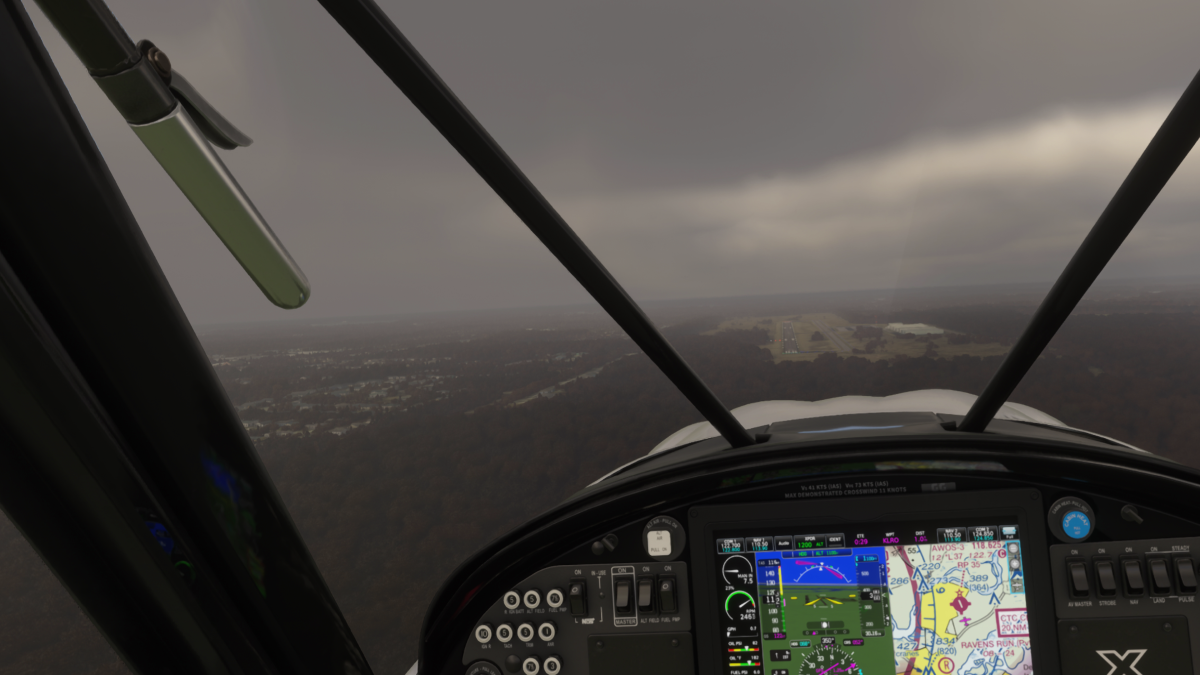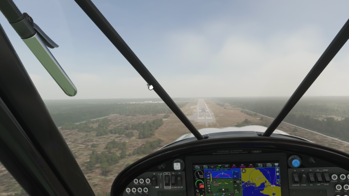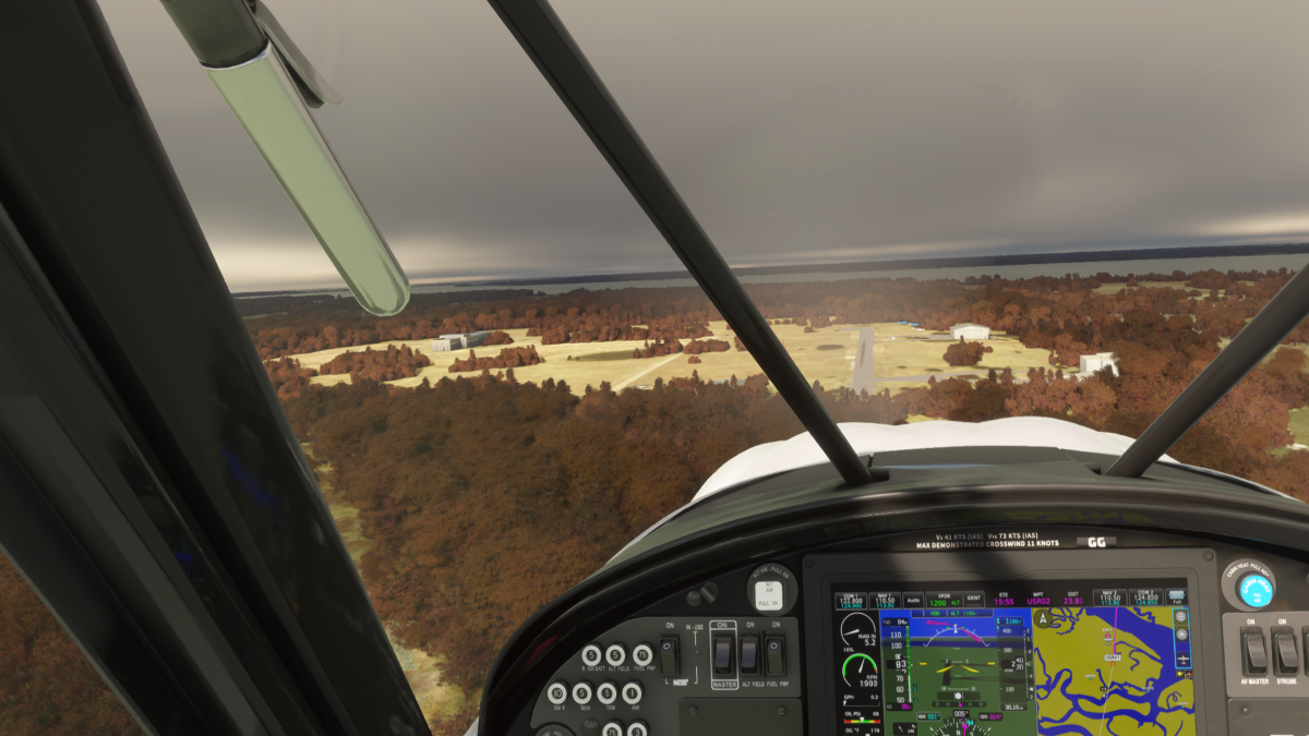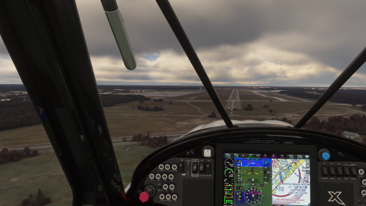 Desde allí nos dirigimos al destino para realizar la aproximación en final para aterrizar en la pista 05 del aeropuerto KCRE Grand Strand (United States of America).