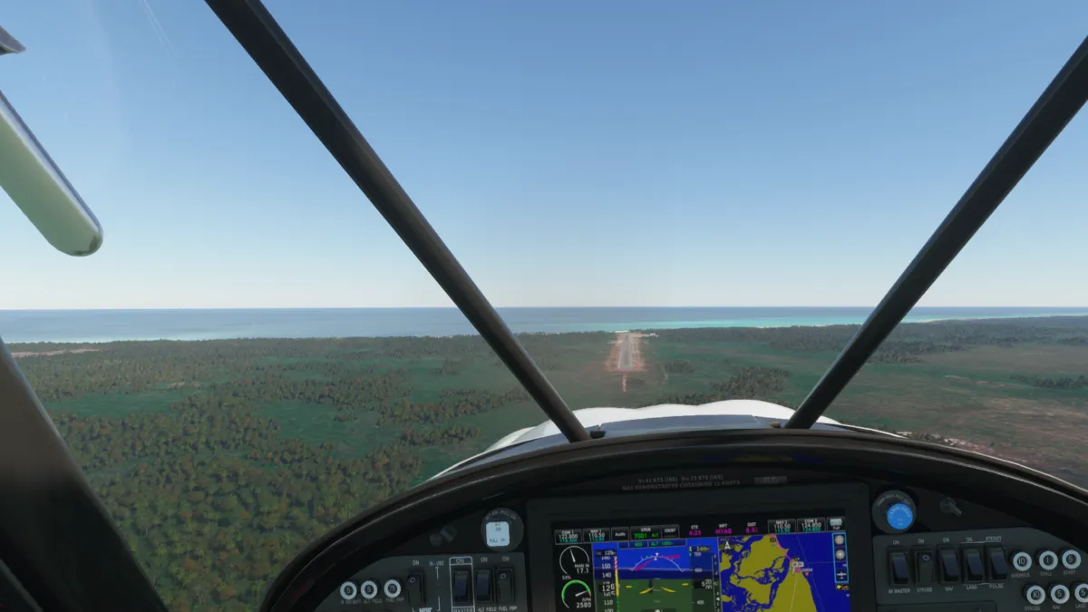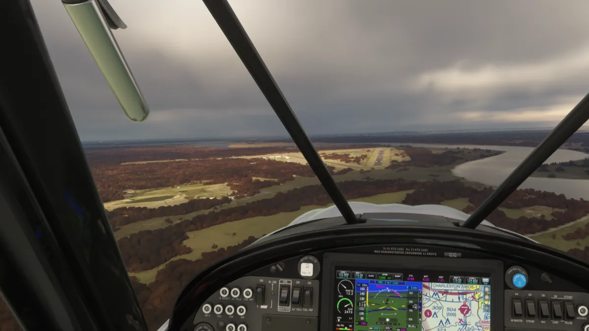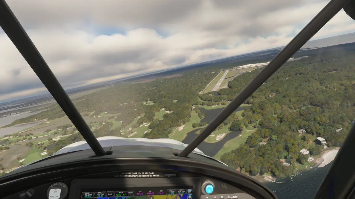 Desde allí nos dirigimos al destino para realizar la aproximación en final para aterrizar en la pista 05 del aeropuerto KCRE Grand Strand (United States of America).