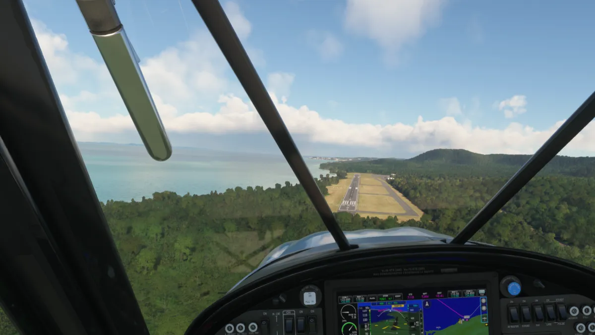 Desde allí nos dirigimos al destino para realizar la aproximación en base y final derecha para aterrizar en la pista 10 del aeropuerto TLPL Hewanorra Intl (Saint Lucia)