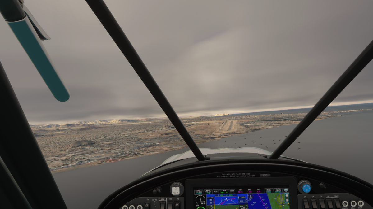 Desde allí nos dirigimos al destino para realizar la aproximación en viento en cola a derecha para aterrizar en la pista 25 del aeropuerto SPZA Maria Reiche Neuman (Peru)