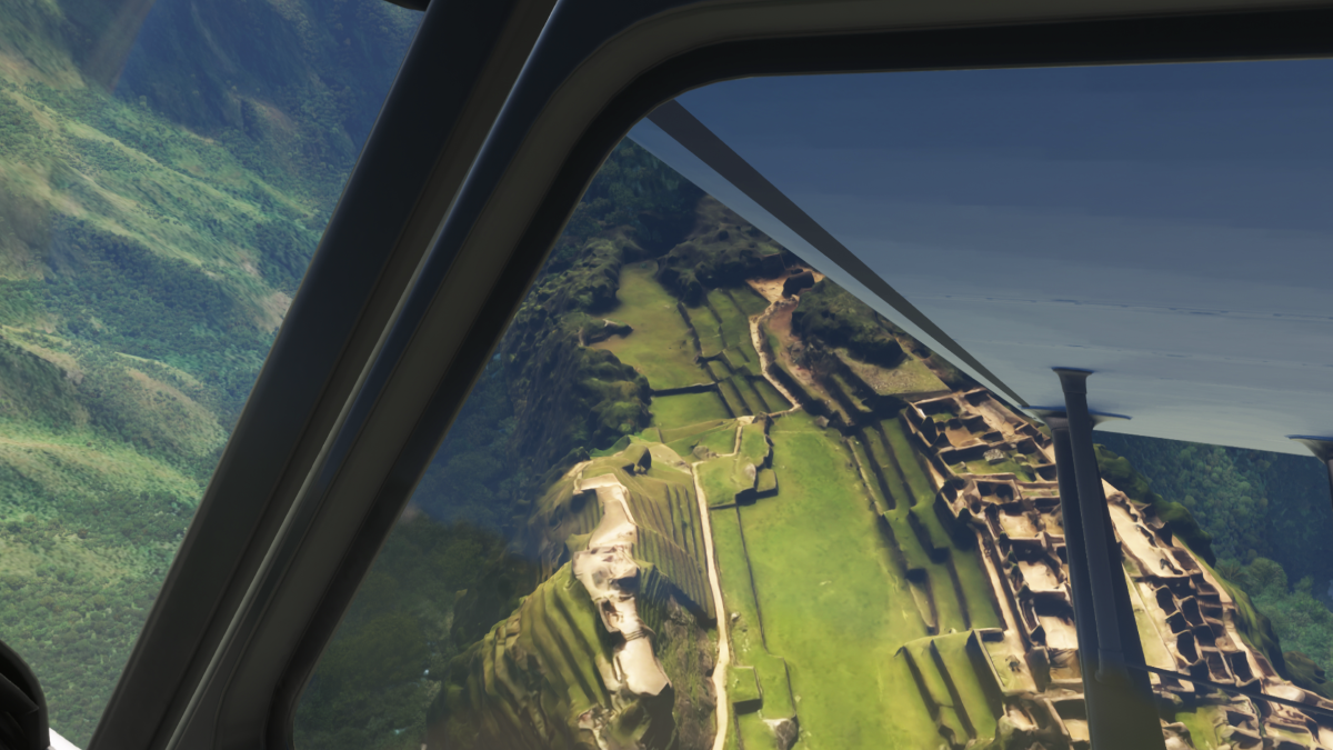Volamos a traves de los valles para llegar a Machu Picchu, donde realizamos varios sobrevuelos.