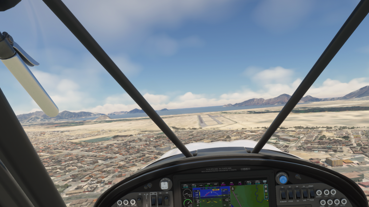 Desde allí nos dirigimos al destino para realizar la aproximación en base y final a izquierda para aterrizar en la pista 18 del aeropuerto SPYO Pacasmayo (Peru)
