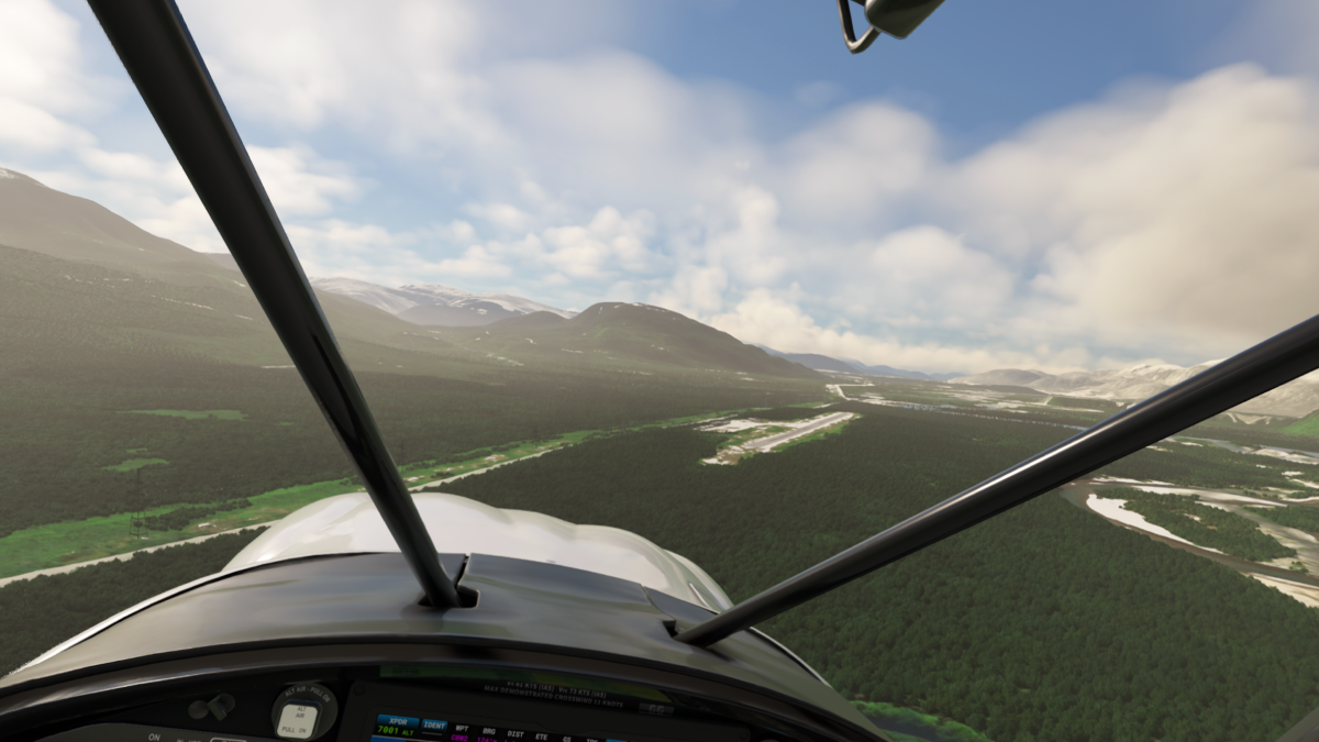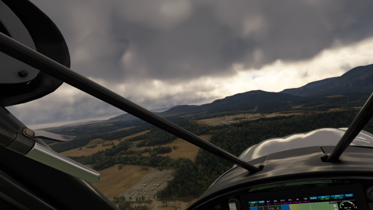 El 03/04/2024 realizamos la etapa 205 del tour mundial con reglas de vuelo visual. Volamos desde el aeropuerto CYXT Terrace (Canada) despegando desde la intersección A (alfa) de la pista 15.