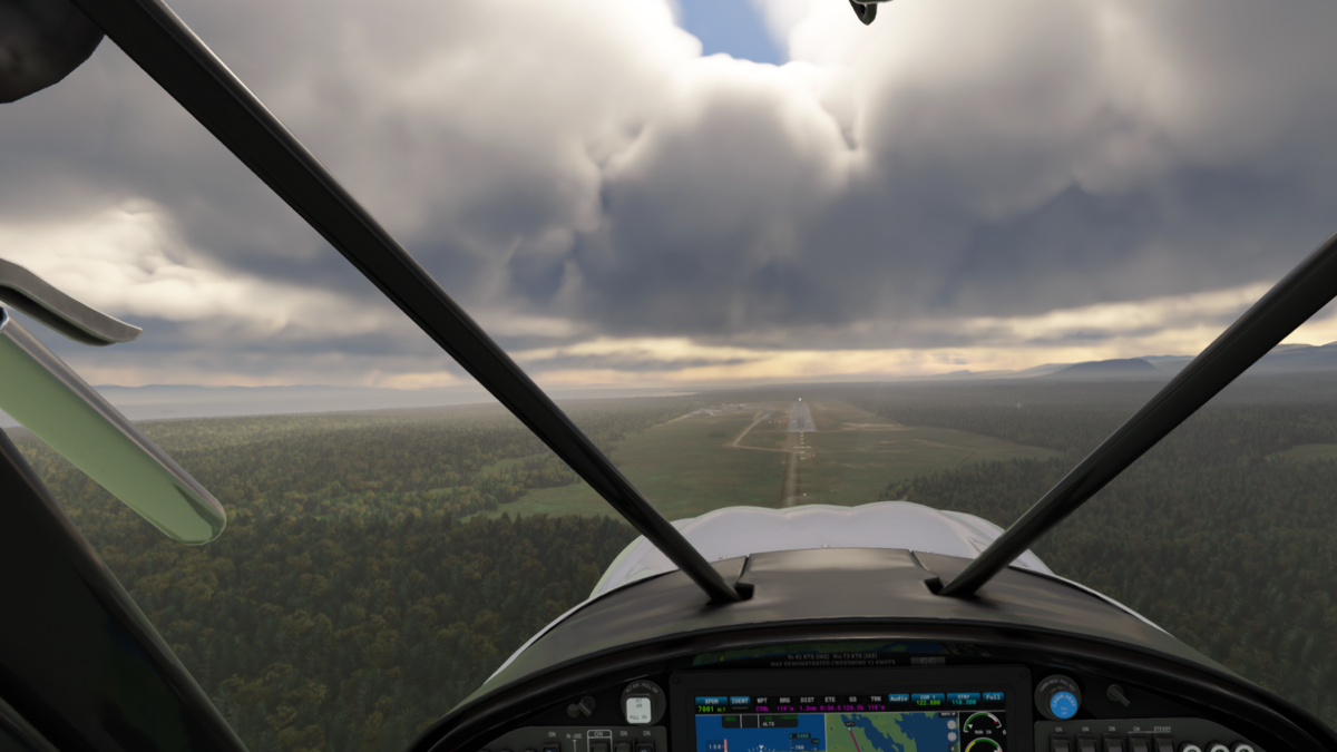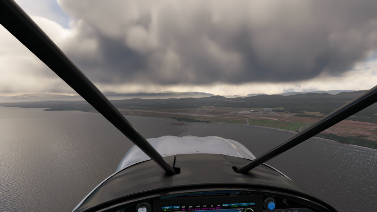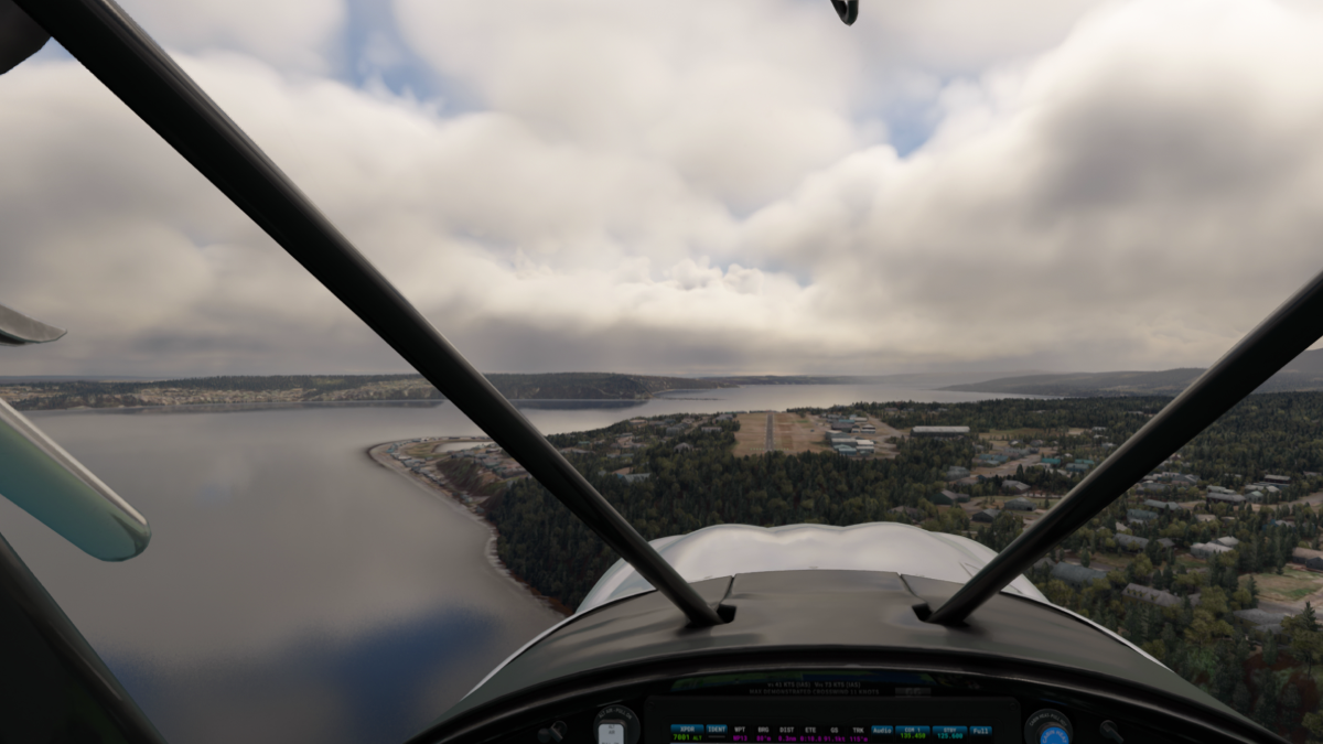 Desde allí nos dirigimos al destino para realizar la aproximación en final para aterrizar en la pista 06 del aeropuerto CAT5 Port Mcneill (Canada)