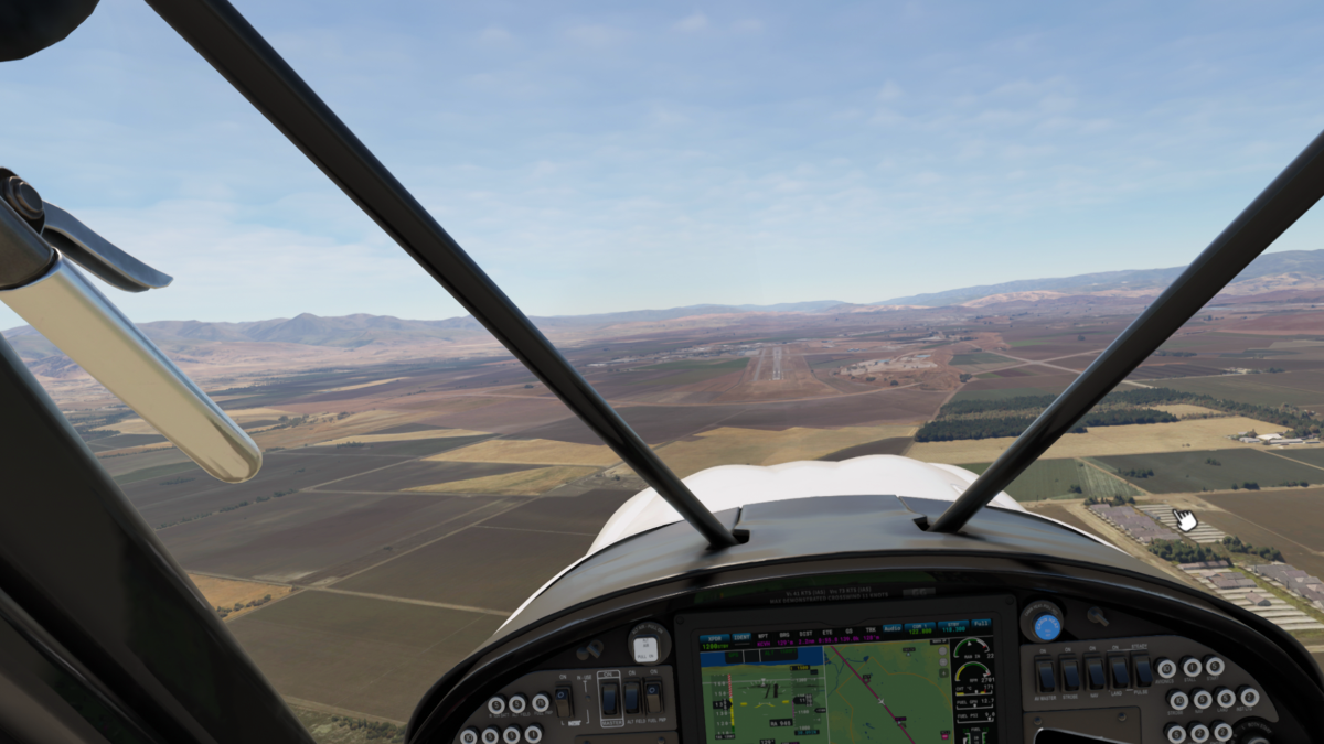 Desde allí nos dirigimos al destino para realizar la aproximación en base y final a derecha para aterrizar en la pista 19 del aeropuerto KPRB Paso Robles Muni (United States of America).