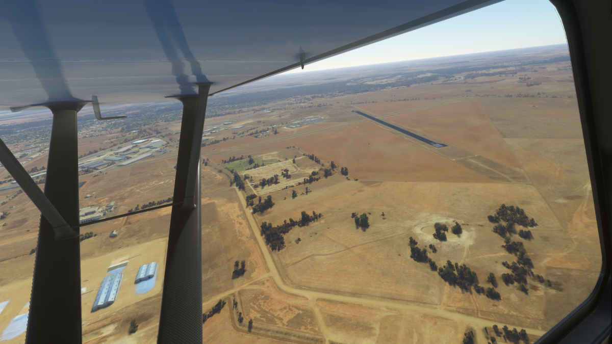 Deniliquin (YDLQ), ingresando viento en cola del circuito a izquierda para la pista 30.